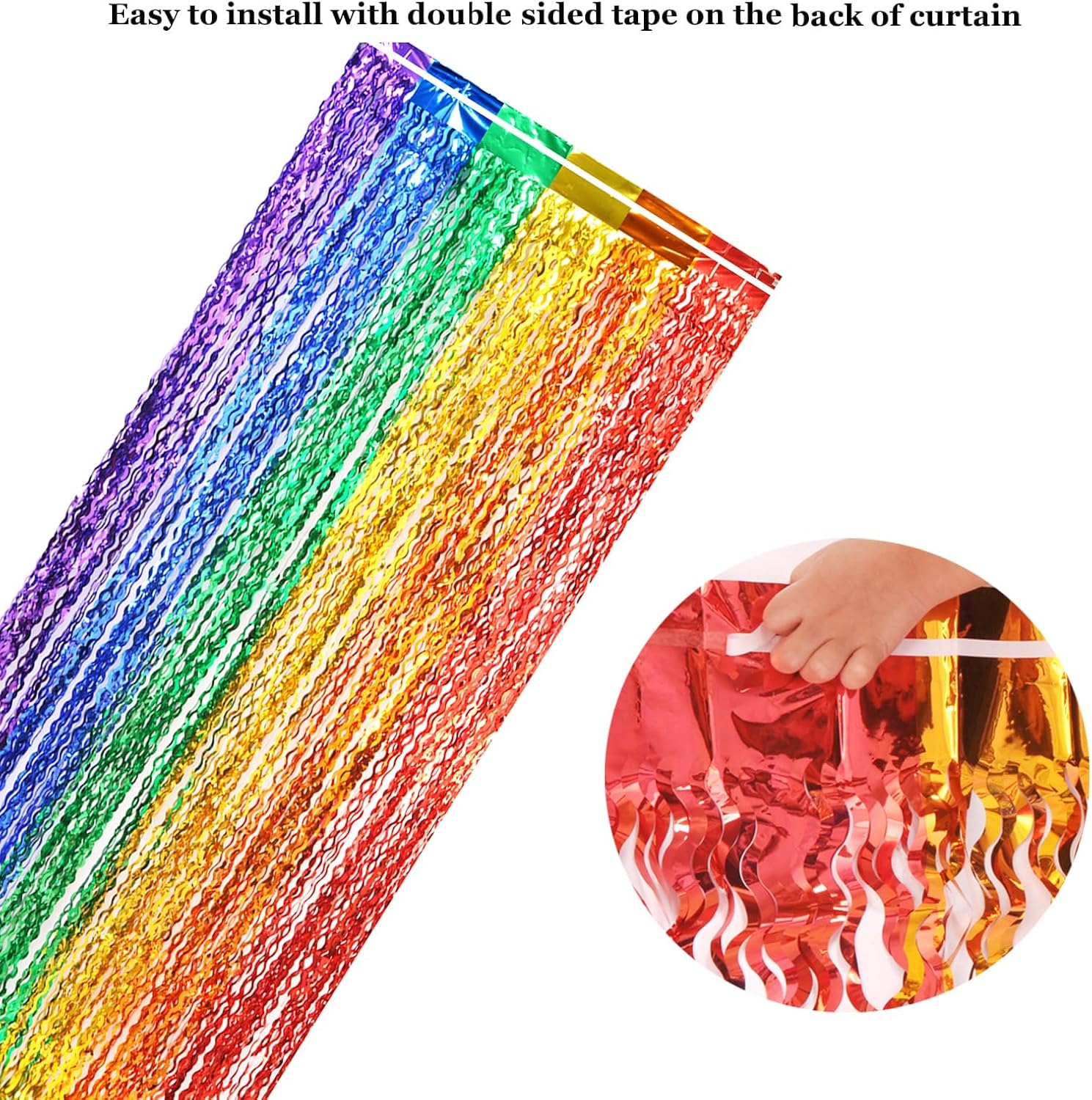 3 Pack Rainbow Foil Curtains - 3.3x6.6ft Metallic Streamers Tinsel Curtains Background for Photo Booth Birthday Weddings Carnivals Graduation