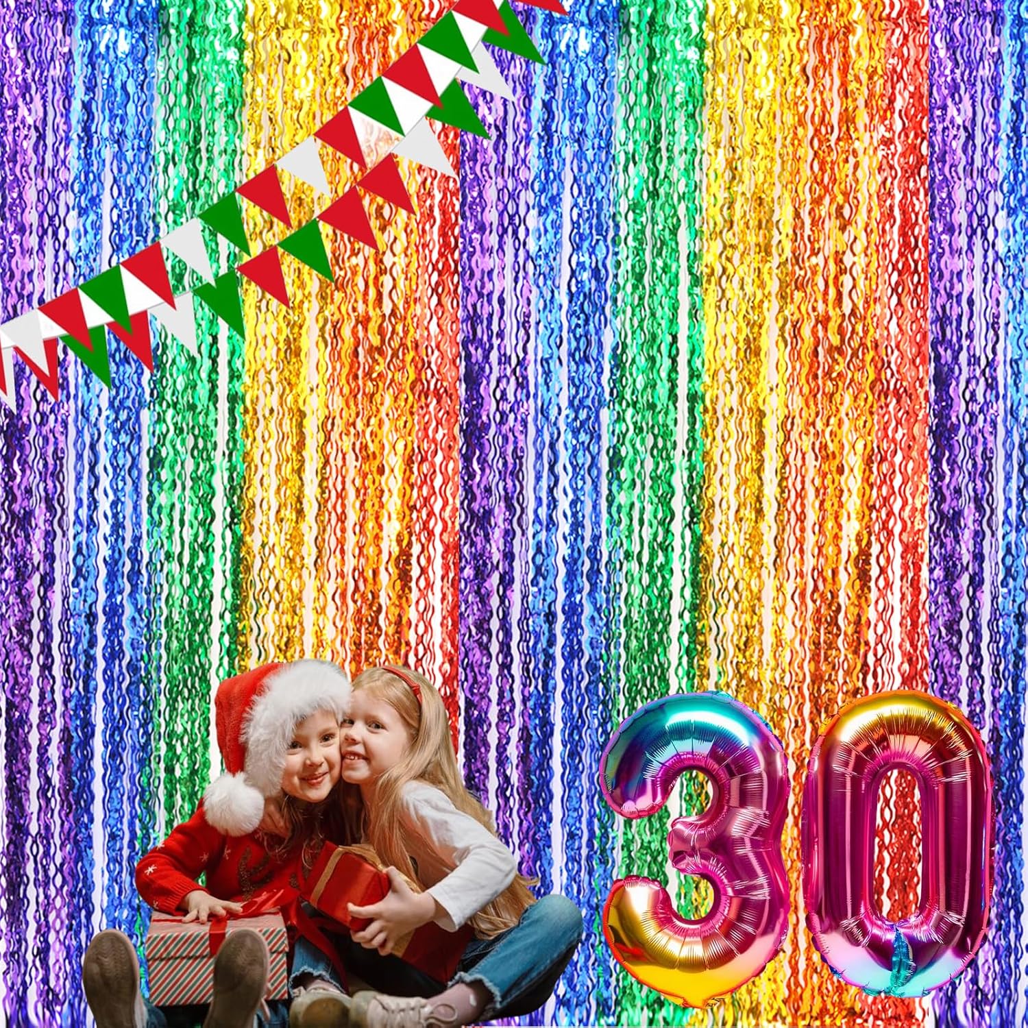 - Packing Included:3 packs rainbow tinsel foil fringe curtains party photo backdrop,Each pack curtains size is 3.3ft x 6.6ft, enough length for decorate your party