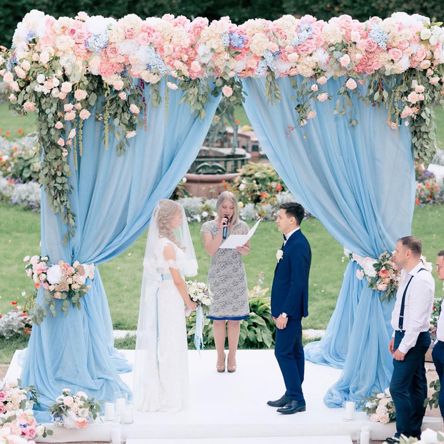 Wokceer Baby Blue Wedding Arch Draping Fabric Backdrop 3 Panels 28.7" X 20FT Sheer Drapes Fabric for Wedding Arbor Ceremony Party