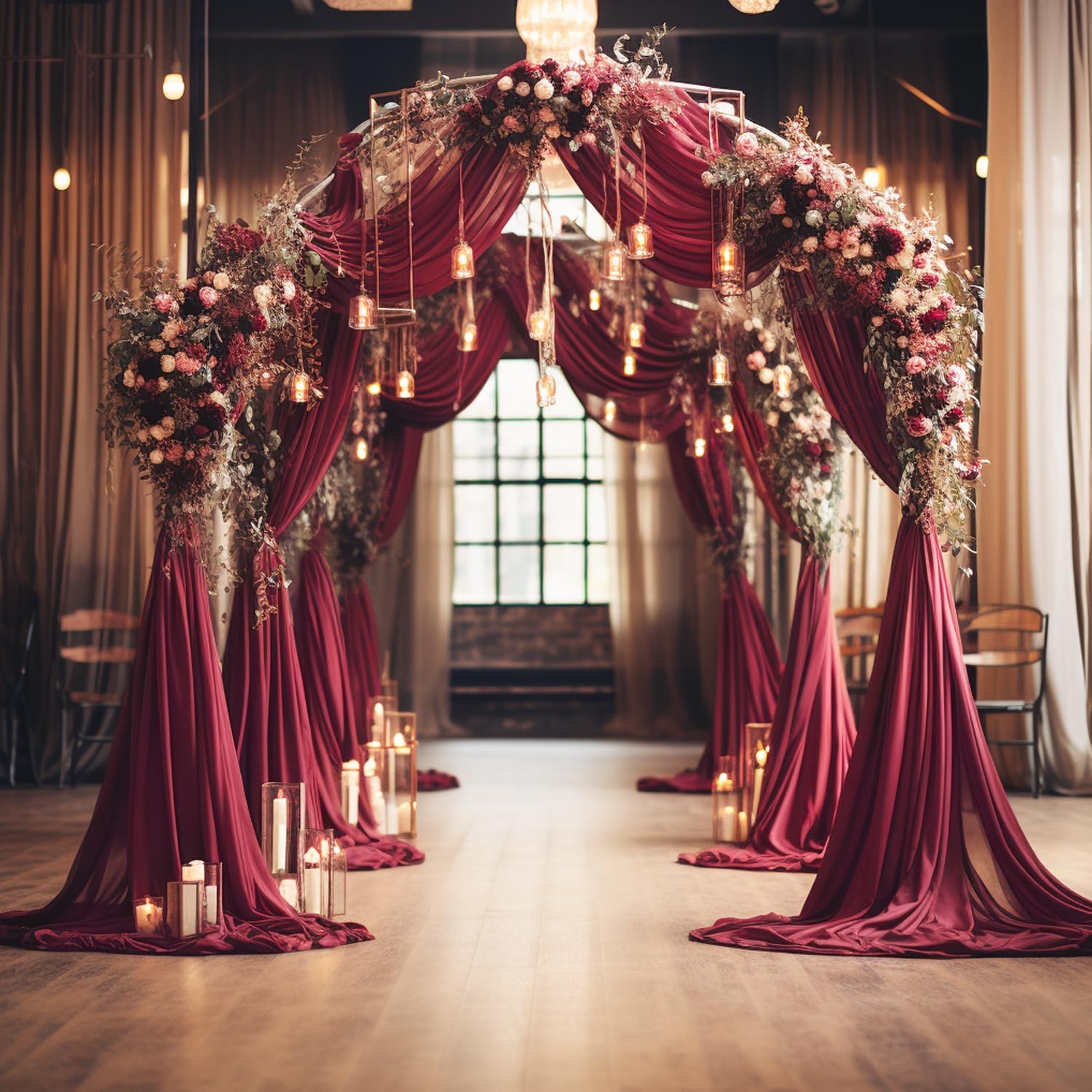 Wokceer Wedding Arch Draping 2 Panels 28.7" x 20FT Burgundy Sheer Fabric Backdrop for Ceremony, Birthday Party, Bridal Shower Decoration