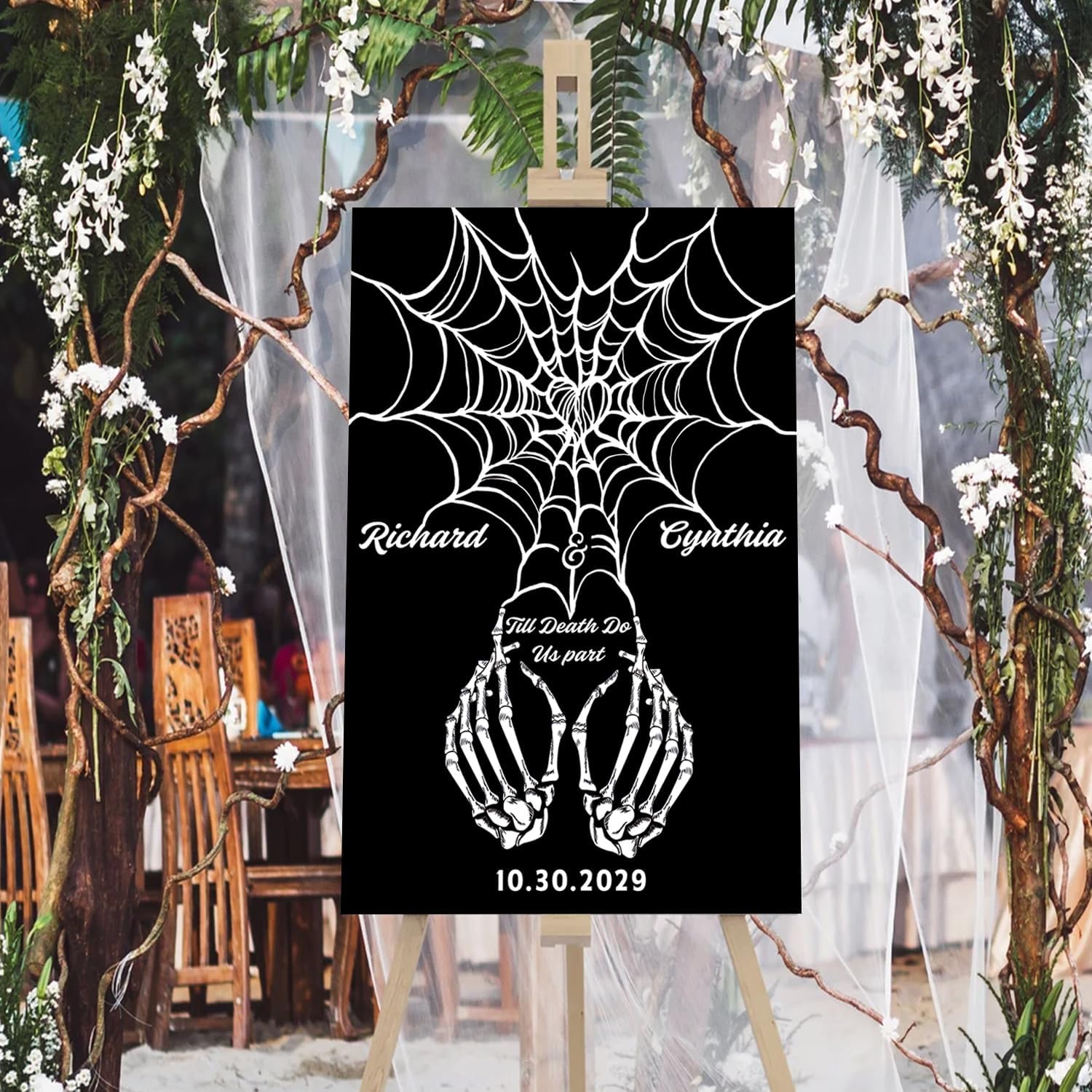 - A stunning choice for those planning a Gothic-inspired wedding or a Halloween-themed celebration. Whether you're exchanging vows on All Hallows' Eve or simply love the allure of Gothic aesthetics, this welcome sign will captivate your guests and make a bold statement.