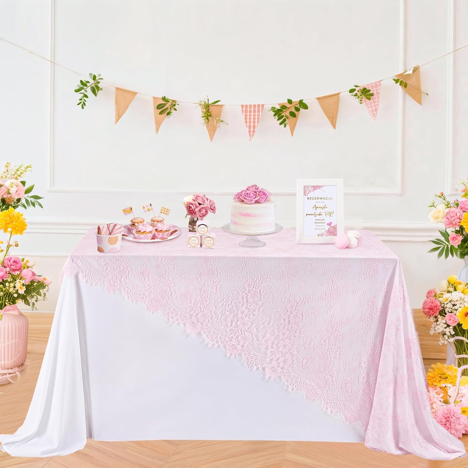 LuoluoHouse Pink Lace Table Cloth 60x120inch Tablecloth for Decorations Wedding Bridal Baby Shower Indoor Outdoor Event