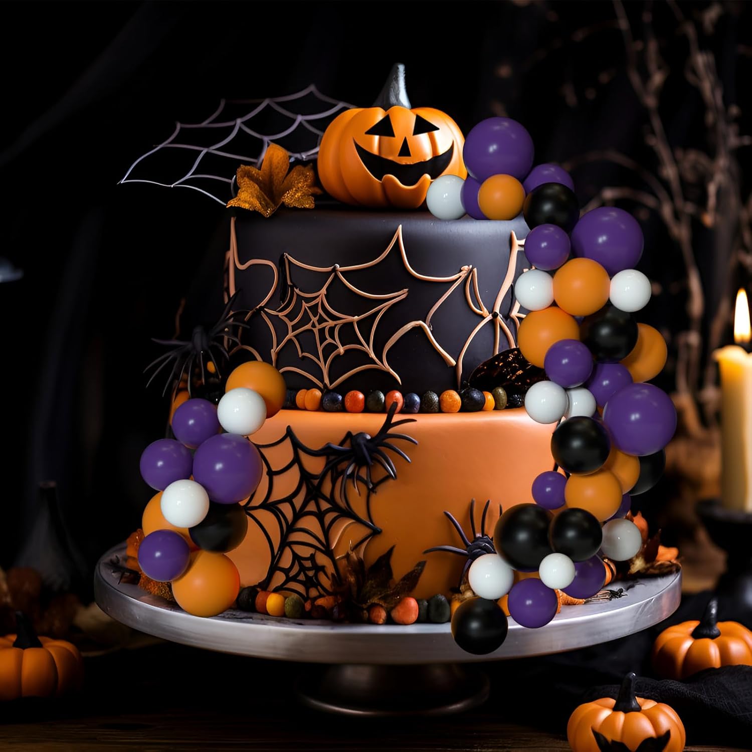 - Package includes: 32 pcs balls cake decorations in different colors and sizes. They are orange, black, dark purple, white colors as picture showed, 8 pieces of each color.