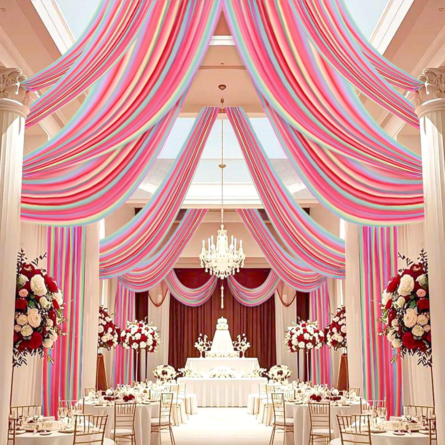 - Wedding Ceiling Drapes Widely Use: Our ceiling curtain is widely use for indoor outdoor wedding stage,birthday,party,dessert table background,engagement parties,baby and bridal showers,photography,graduation prom and so on. You can also use our chiffon curtains as dessert table runner, arch drapery, tent, bed canopy, and photo backdrop.