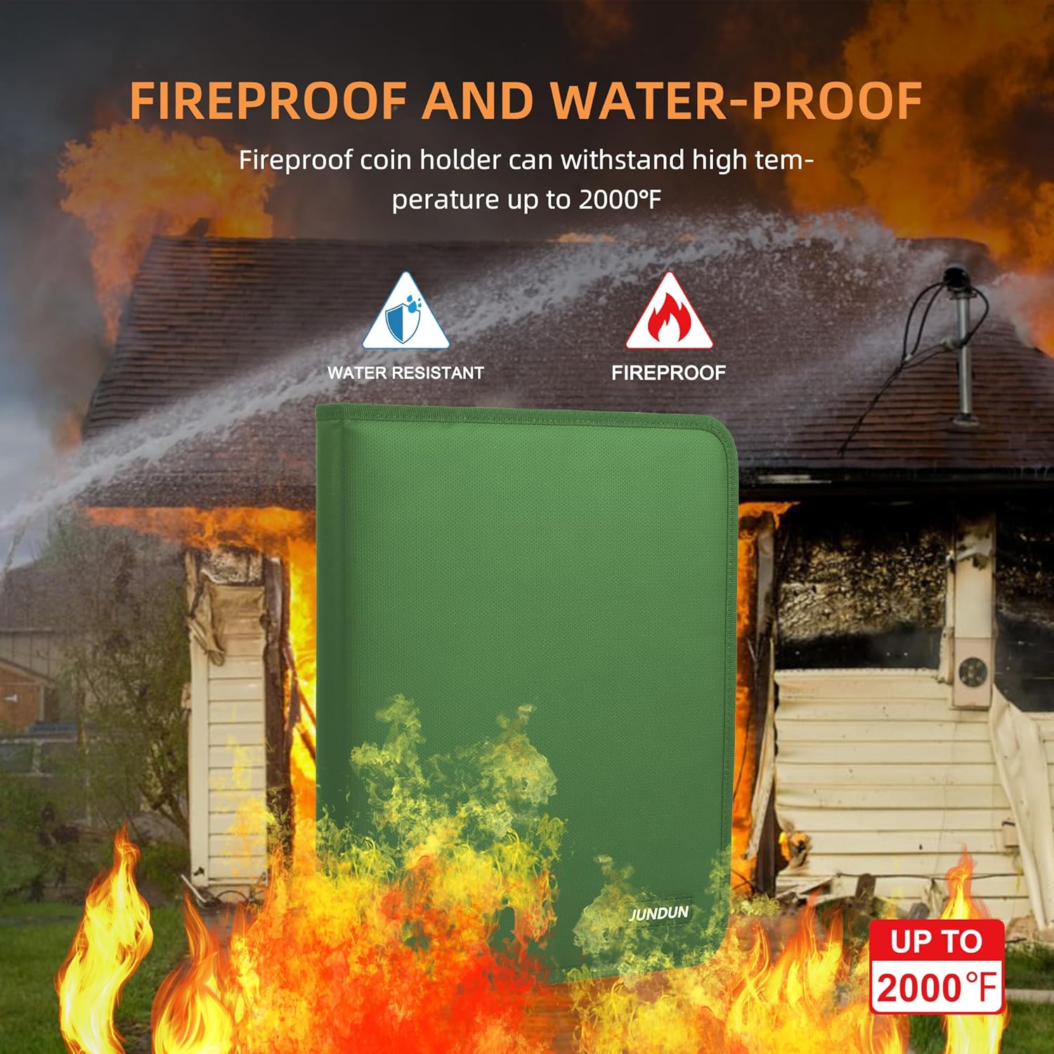 - Fireproof Safe Protection :coin albums for collectors is made of silicone coated material which withstands the temperature up to 2000℉ .It will protect your valuables from the damage in case of fire .Coin collection book for collectors gives you enough time to save your valuables from fire.It is highly recommended that coin collection album is combined with fireproof safe.They will offer you the double fireproof safe protection