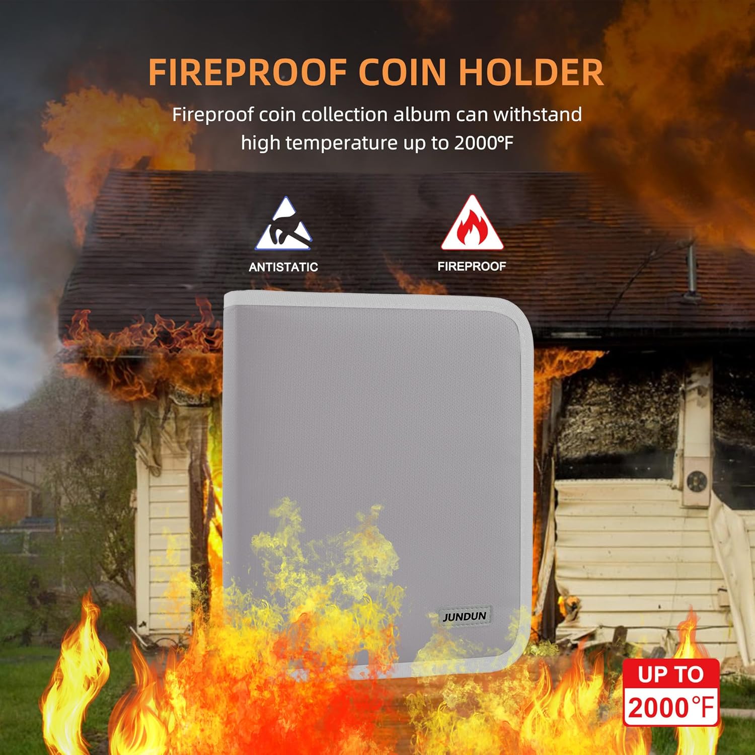 - Fireproof Safe Protection :Coin collection book - made from premium silicone fiberglass material that can withstand extreme heat up to 2000 ℉. In the event of a fire, coin albums for collectors provide precious time to save your valuable coin collection. It is highly recommended that coin collection album is combined with fireproof safe ,ensuring your prized possessions remain secure