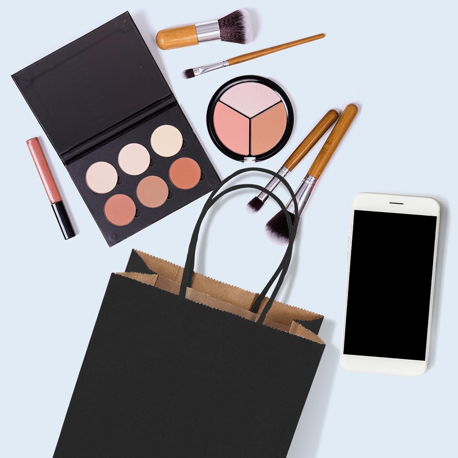 GSSUSA Black Gift Bags 5.25x3.75x8 400Pcs, Valentines Day, Paper Bags with Handles Bulk, for Small Business, Sturdy Kraft Paper, Retail Shopping, Gift Bag for Party Birthday