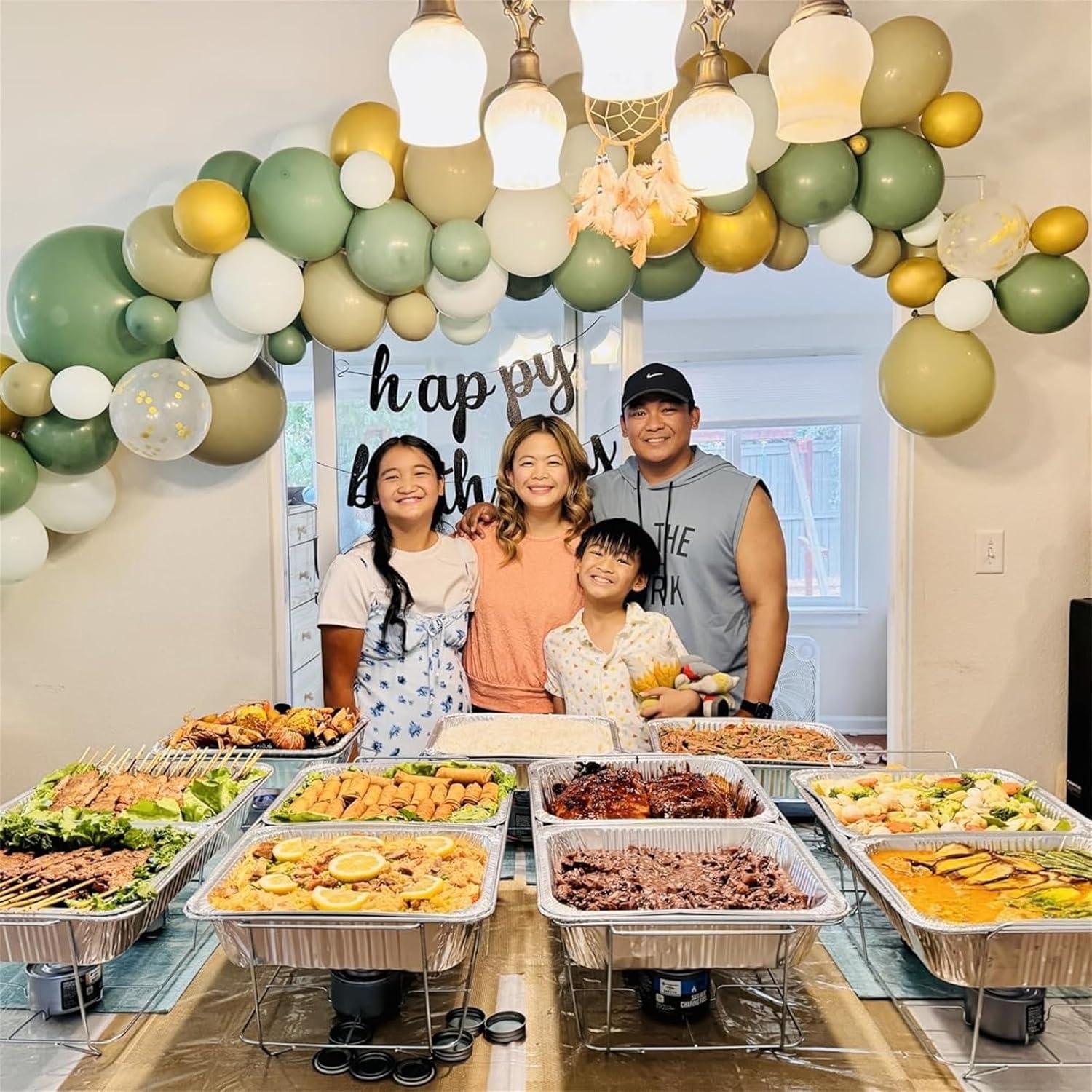 - š Sage Green Balloons Set: This is a beautiful bright balloon, which contains balloons of different colors. Include 12 inch sage green balloon(20pcs), olive green balloon(15pcs), macaron green balloon(10pcs), metallic gold balloon(10pcs), gold confetti balloon(5pcs), 2 rolls of ribbons. You can use these different shades of green balloon kits, DIY balloon combinations to create your birthday party.