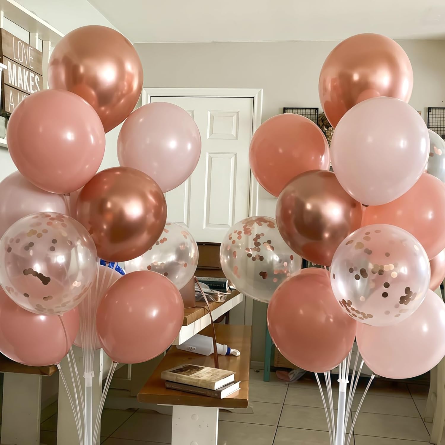 Dusty Pink Balloon Set, 60Pcs 12 Inch Retro Blush Pink White Sand Nude Latex Balloon with Metallic Confetti Rose Pink Helium Balloon for Girls Women Birthday Party Baby Shower Boho Decoration Supplies