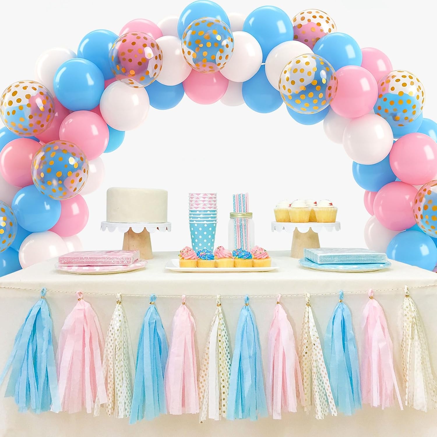 Patimate Gender Reveal Pink and Blue Balloons Set, 50 pcs 12 inch Pastel Blue Pink White Confetti Latex Balloons Kit for Gender Reveal Baby Shower Birthday Party Decorations