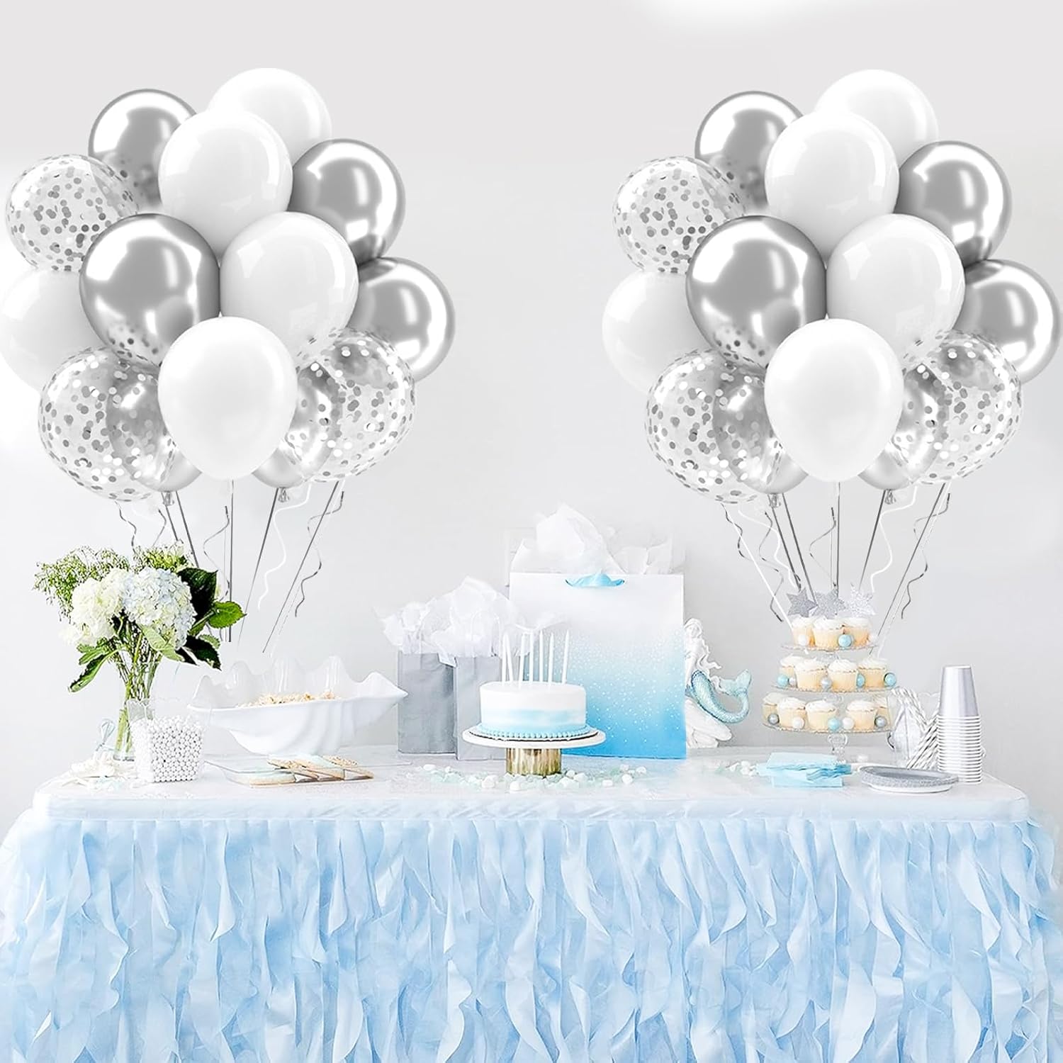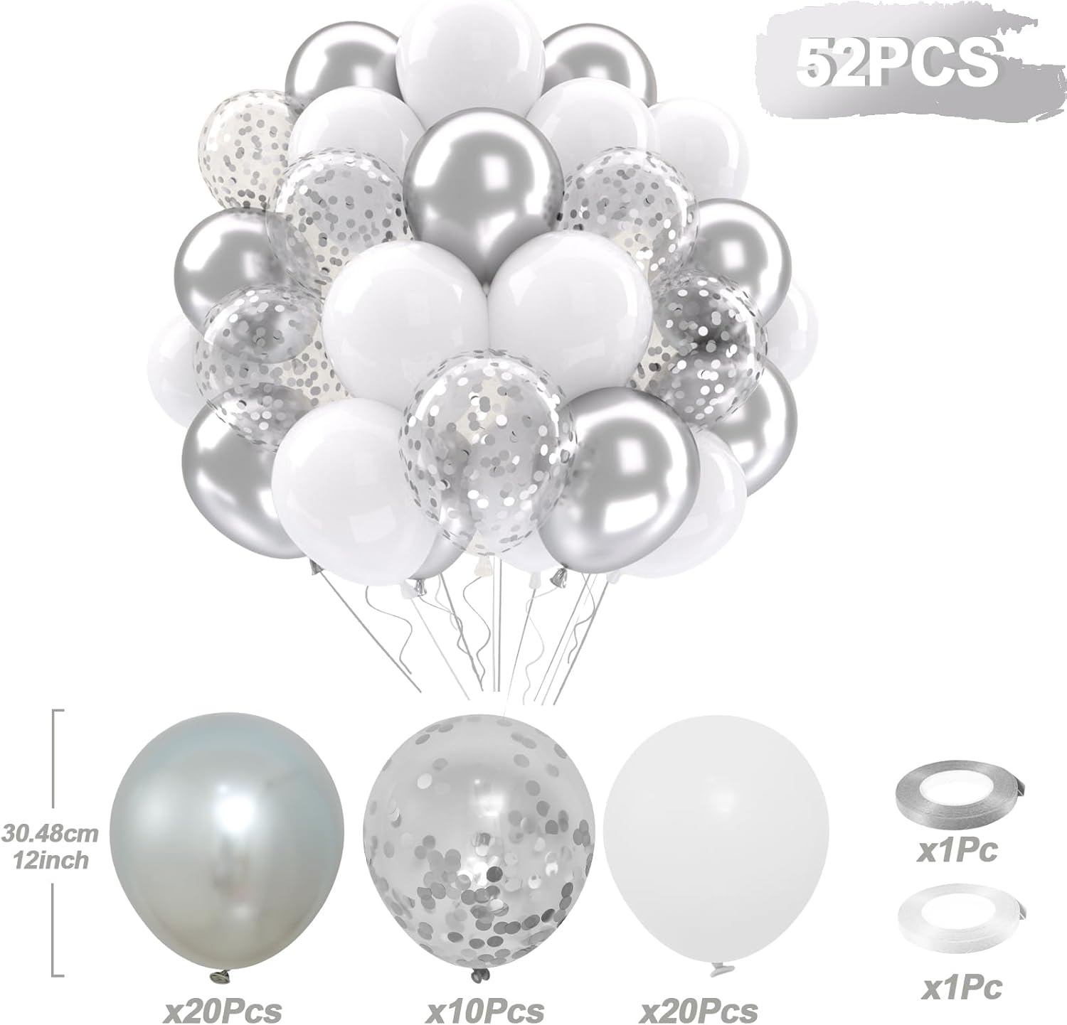 Patimate White and Silver Balloons Set, 50 pcs 12 inch Metallic Silver White Confetti Latex Balloons Kit for Birthday Wedding Anniversary Baby Shower Party Decorations