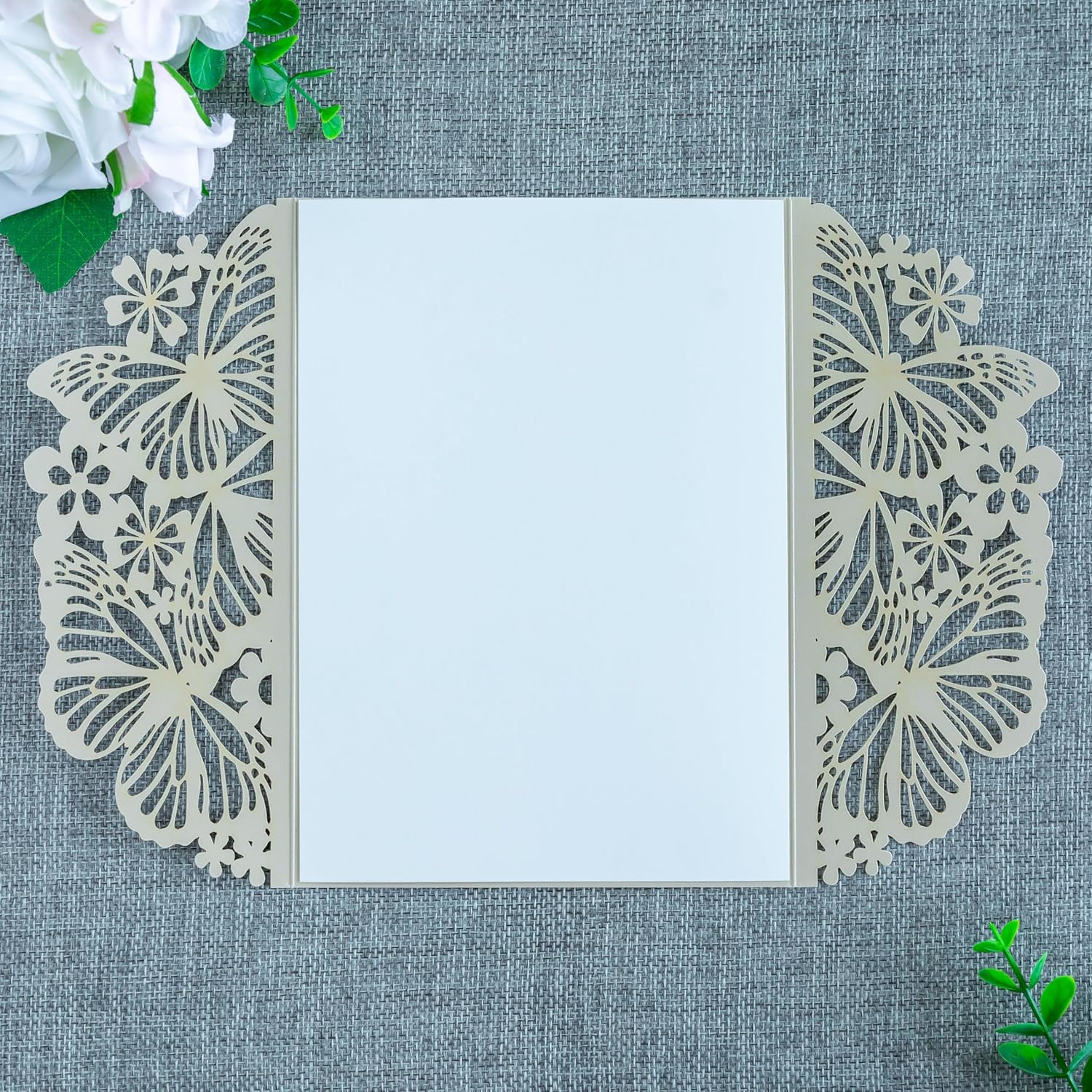 20 PCS 5.12x7.2 Butterfly Quinceanera Invitation, Laser Cut Wedding Invitation Cards with Envelopes for XV Anos Bridal Shower Baby Shower Invite (Shinny Champagne)
