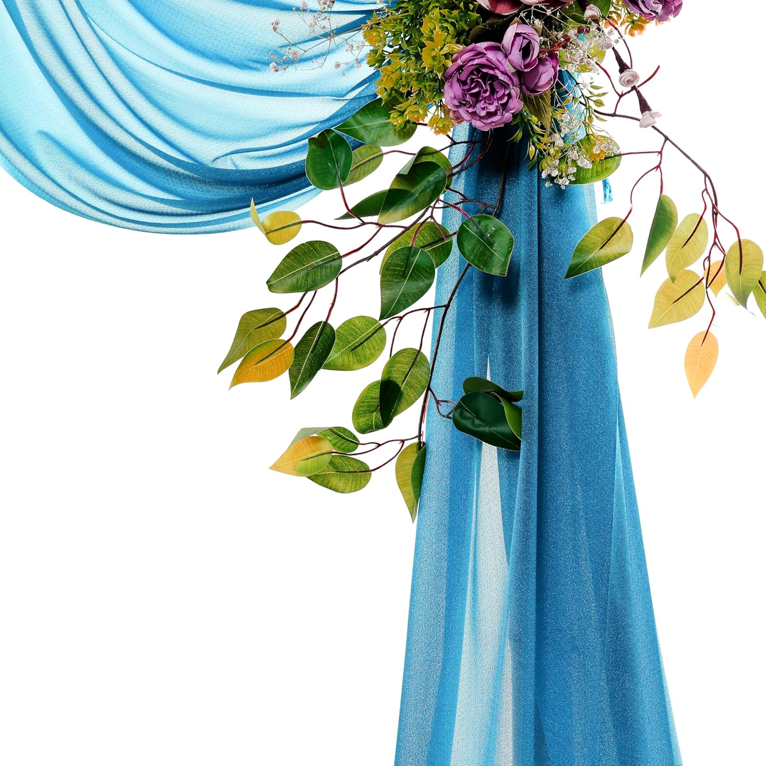- 🎁 MATERIAL: Chiffon (100% Polyester, 100 % Wrinkle-FREE). These drapery fabric panels made with a bit of glitter which looks elegant under lights, very flowy. makes this sheer table runner more graceful than traditional fabrics. (This fabric, very smooth, delicate and comfortable, a natural sense of drooping style, designed to resist stains and wrinkles so use again & again)
