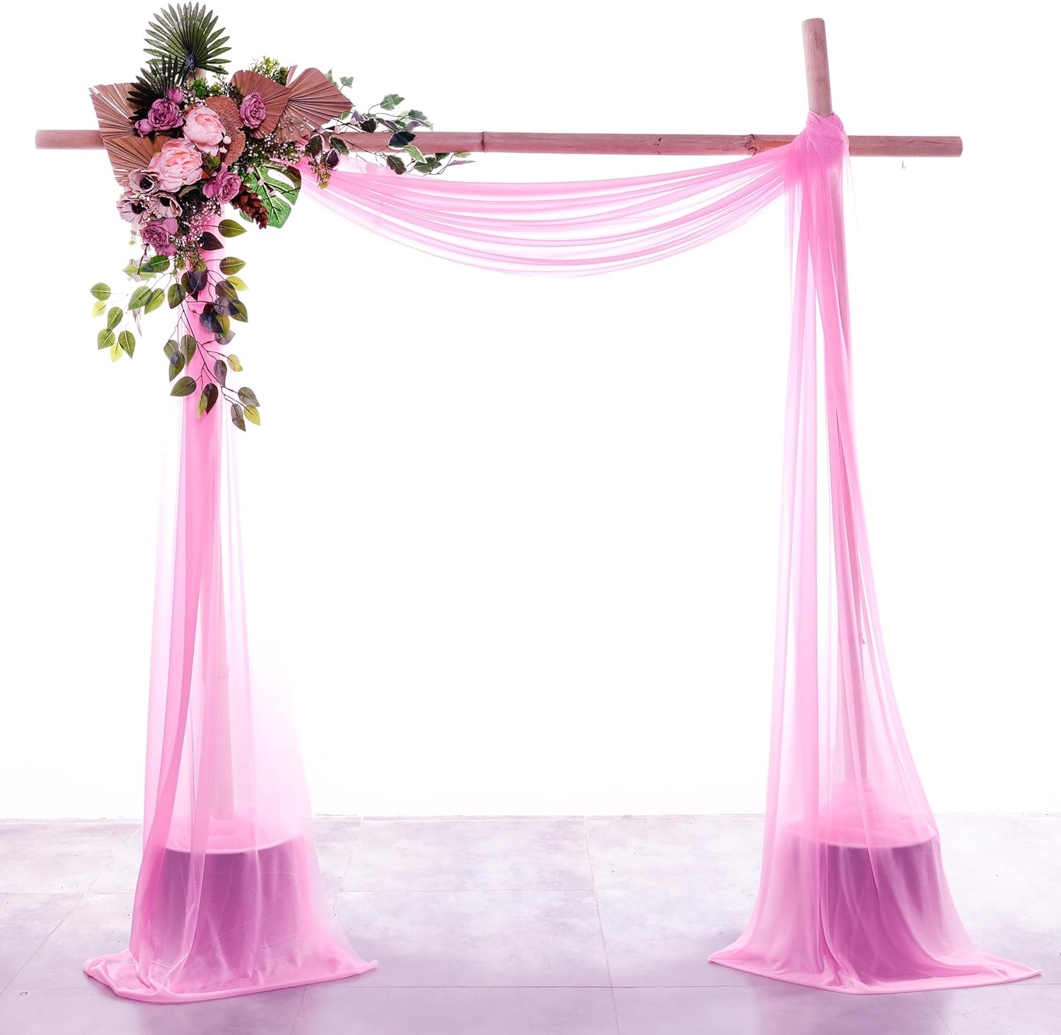 VDS Pack of 2 Panel (30 Inch X 50 Feet) Wedding Arch Draping Fabric Sheer Chiffon Fabric Drapery for Wedding Ceremony Reception Swag Backdrop Canopy Chuppah ARBO Altars Decoration (Bubblegum)