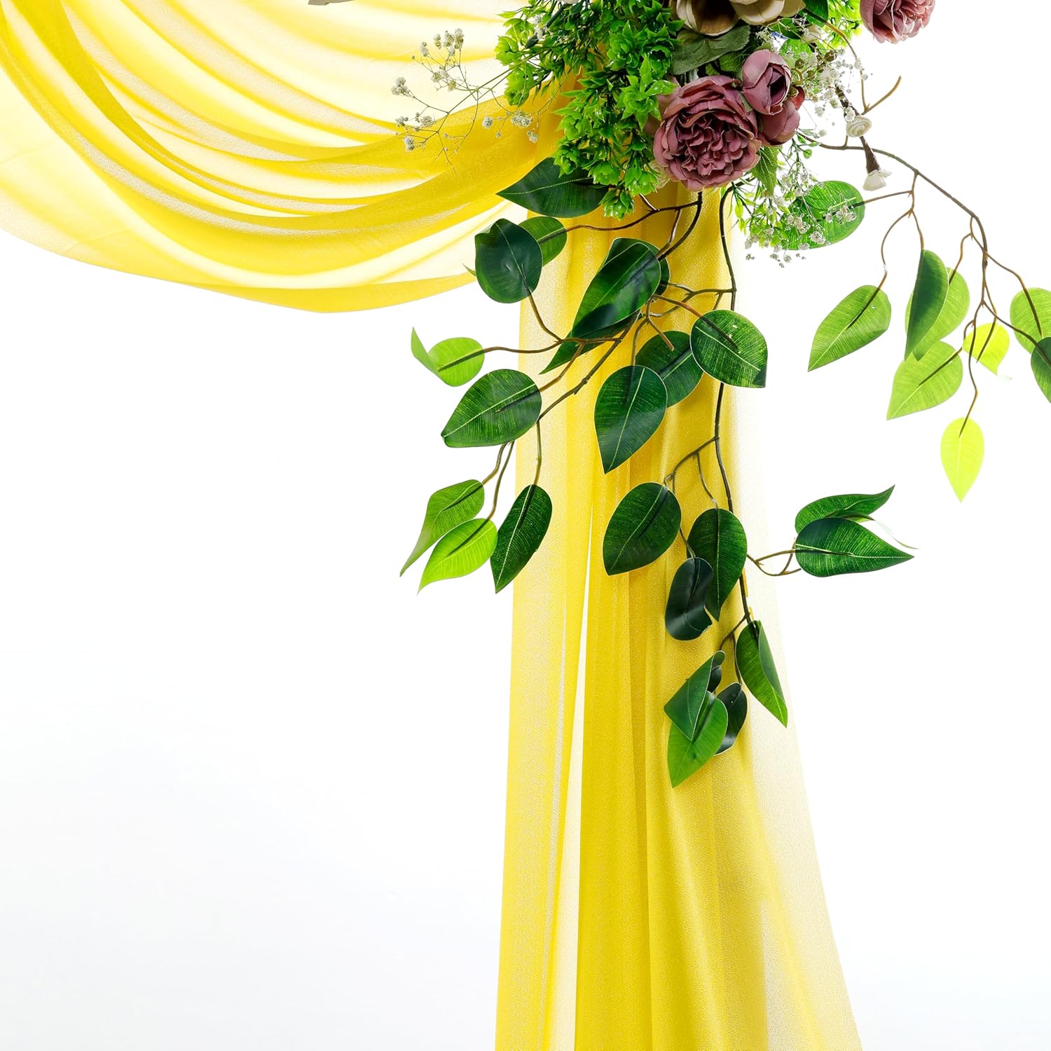 VDS Pack of 2 Panel (30 Inch X 100 Feet) Wedding Arch Draping Fabric Sheer Chiffon Fabric Drapery for Wedding Ceremony Reception Swag Backdrop Canopy Chuppah ARBO Altars Decoration (Yellow)