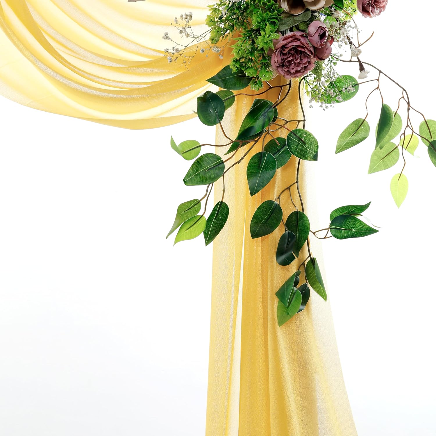 VDS Pack of 2 Panel (30 Inch X 100 Feet) Wedding Arch Draping Fabric Sheer Chiffon Fabric Drapery for Wedding Ceremony Reception Swag Backdrop Canopy Chuppah ARBO Altars Decoration (Gold)