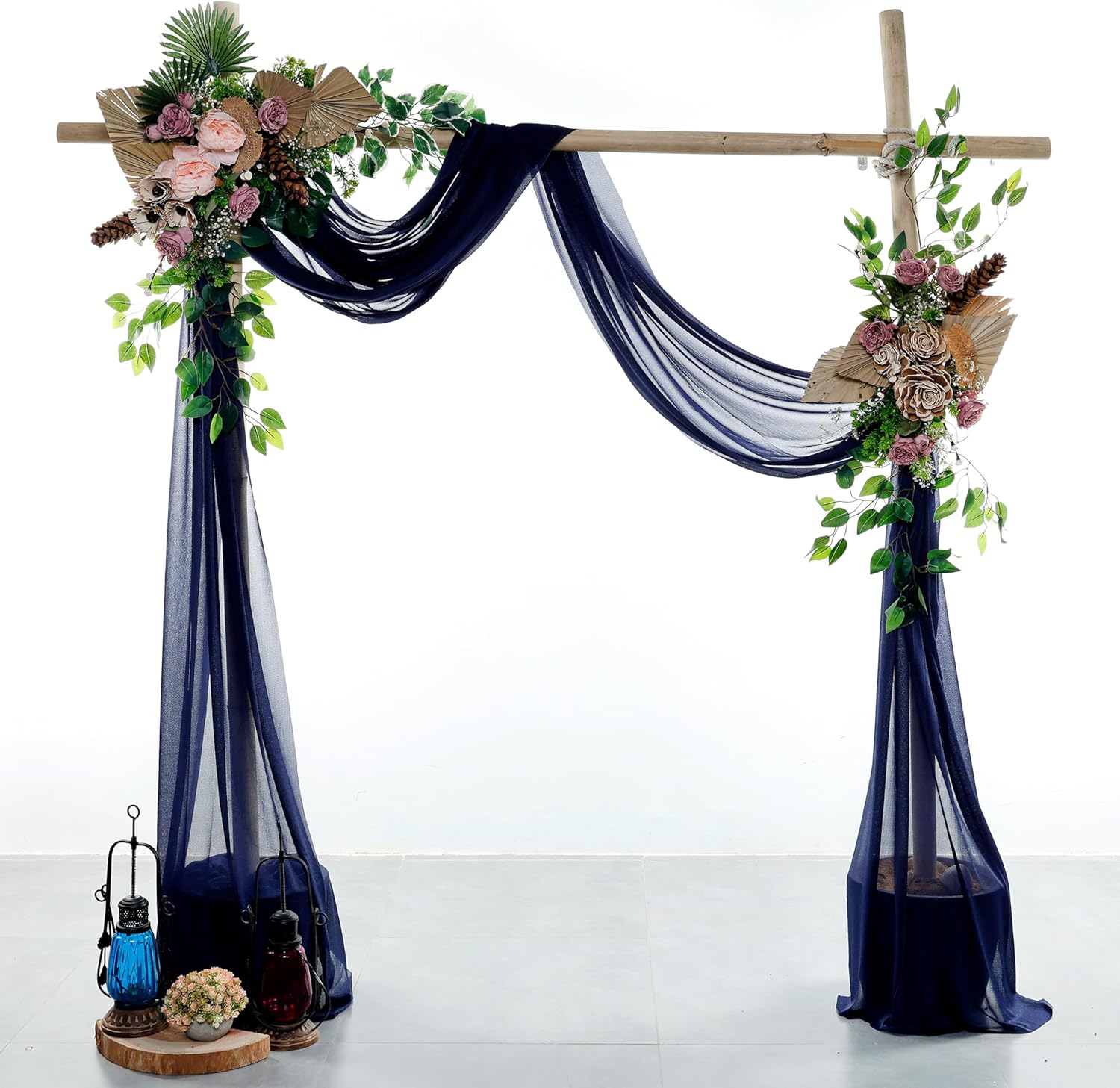 VDS Pack of 1 Panel (30 Inch X 50 Feet) Wedding Arch Draping Fabric Sheer Chiffon Fabric Drapery for Wedding Ceremony Reception Swag Backdrop Canopy Chuppah ARBO Altars Decoration (Navy Blue)