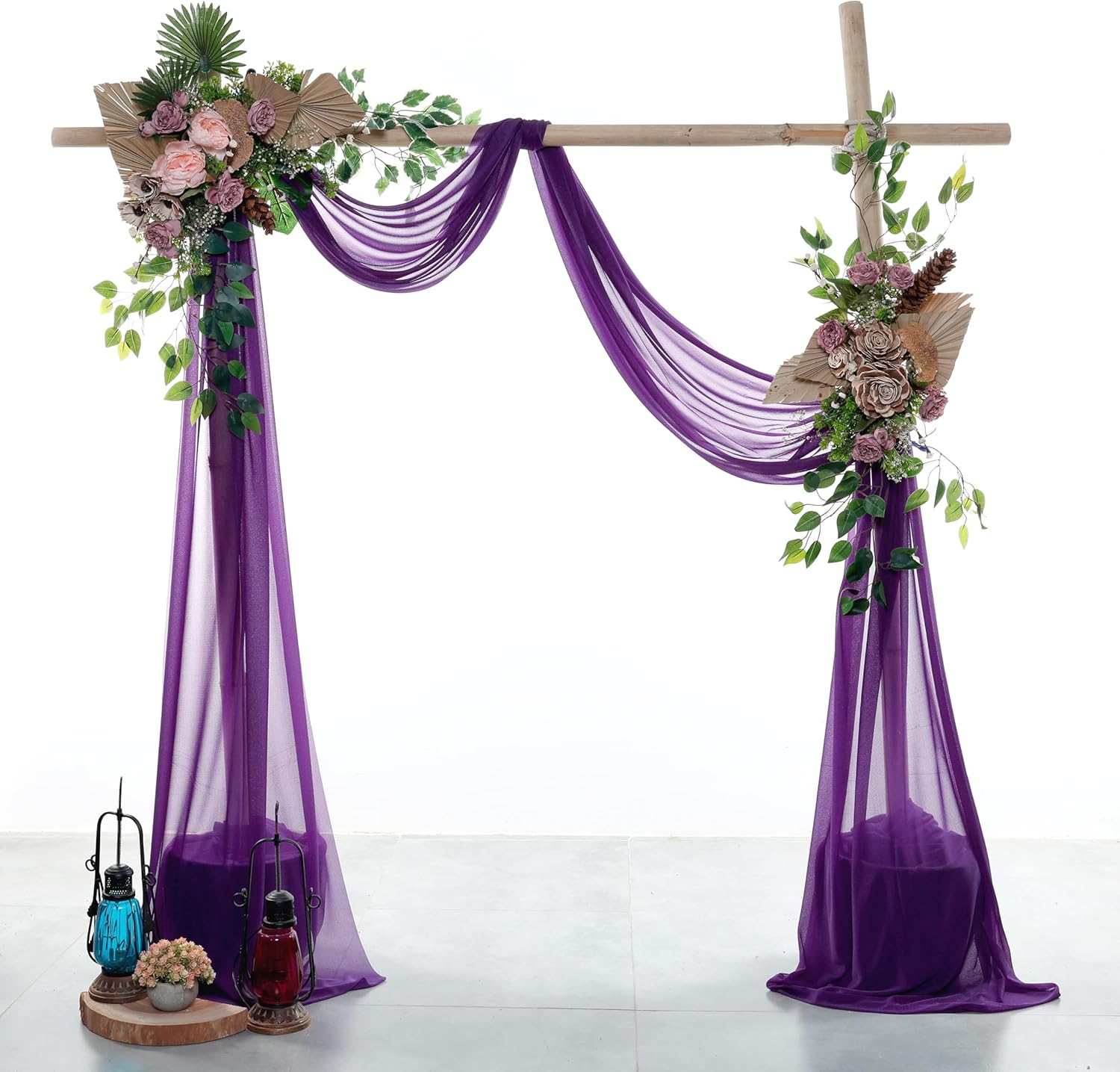 VDS Pack of 2 Panel (30 Inch X 50 Feet) Wedding Arch Draping Fabric Sheer Chiffon Fabric Drapery for Wedding Ceremony Reception Swag Backdrop Canopy Chuppah ARBO Altars Decoration (Purple)