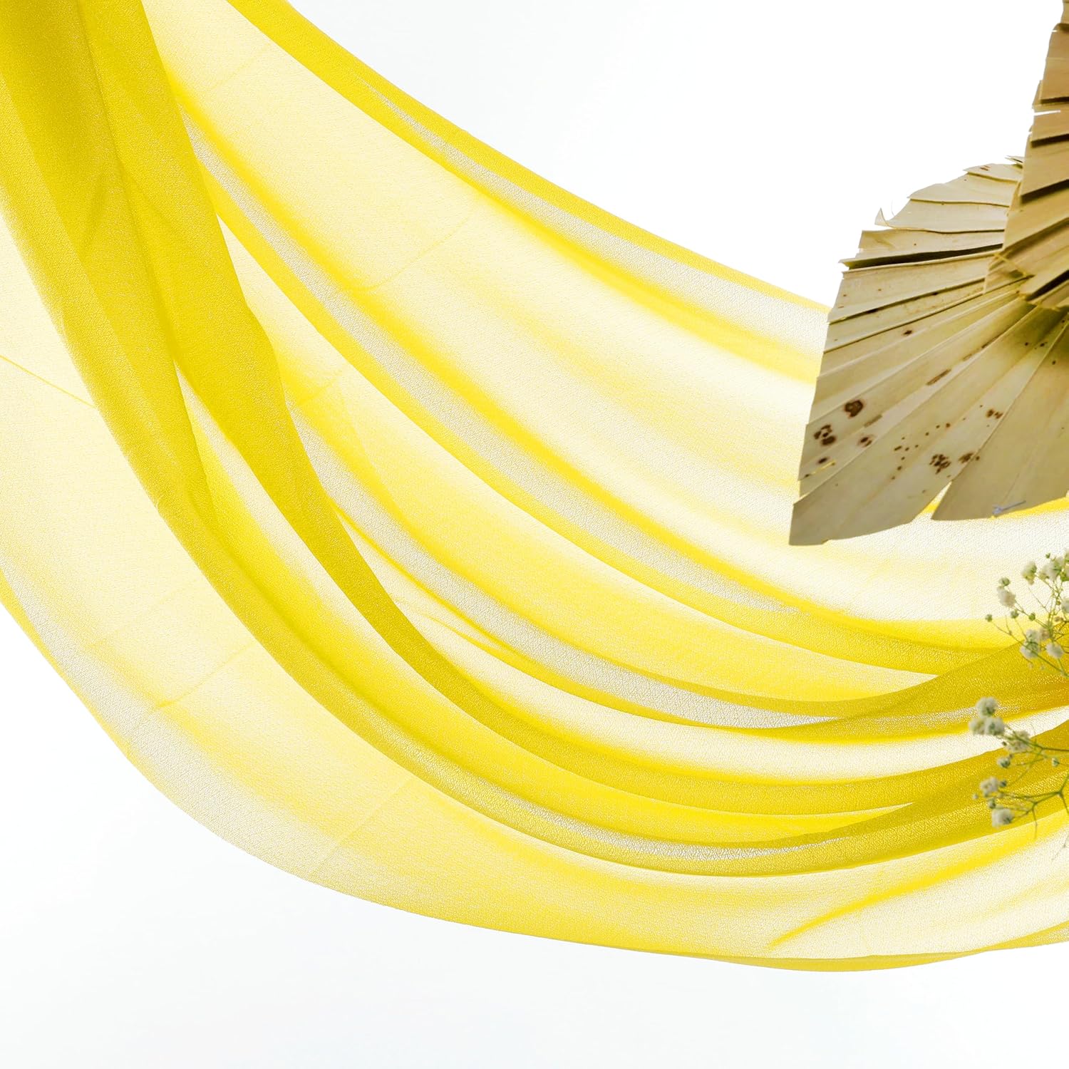 VDS Pack of 1 Panel (30 Inch X 40 Feet) Wedding Arch Draping Fabric Sheer Chiffon Fabric Drapery for Wedding Ceremony Reception Swag Backdrop Canopy Chuppah ARBO Altars Decoration (Yellow)