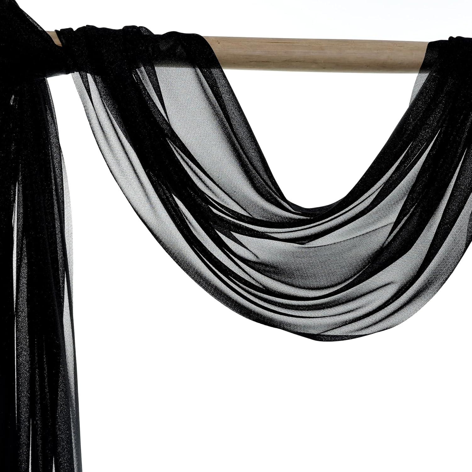 VDS Pack of 1 Panel (30 Inch X 50 Feet) Wedding Arch Draping Fabric Sheer Chiffon Fabric Drapery for Wedding Ceremony Reception Swag Backdrop Canopy Chuppah ARBO Altars Decoration (Black)