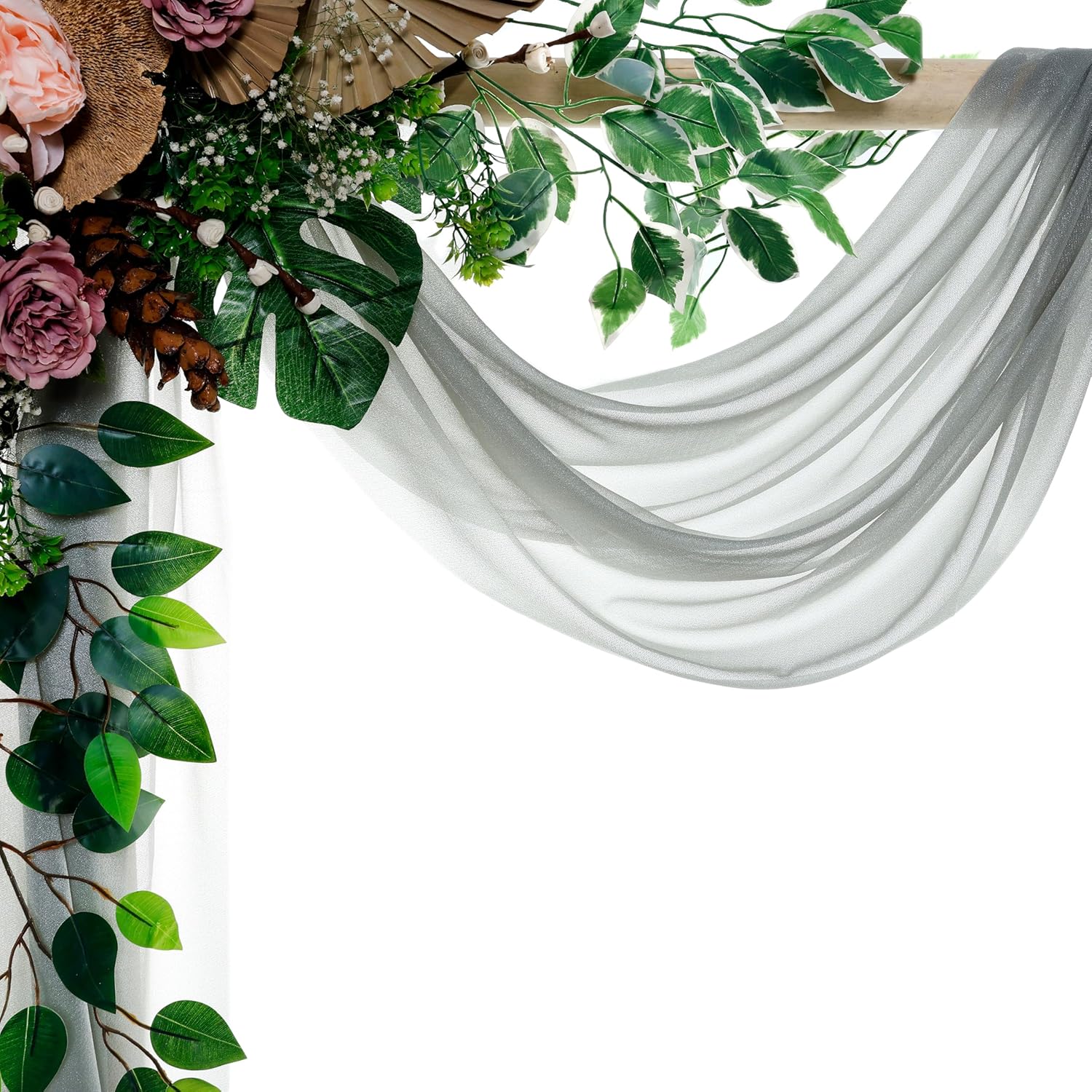 VDS Pack of 1 Panel (30 Inch X 100 Feet) Wedding Arch Draping Fabric Sheer Chiffon Fabric Drapery for Wedding Ceremony Reception Swag Backdrop Canopy Chuppah ARBO Altars Decoration (Grey)