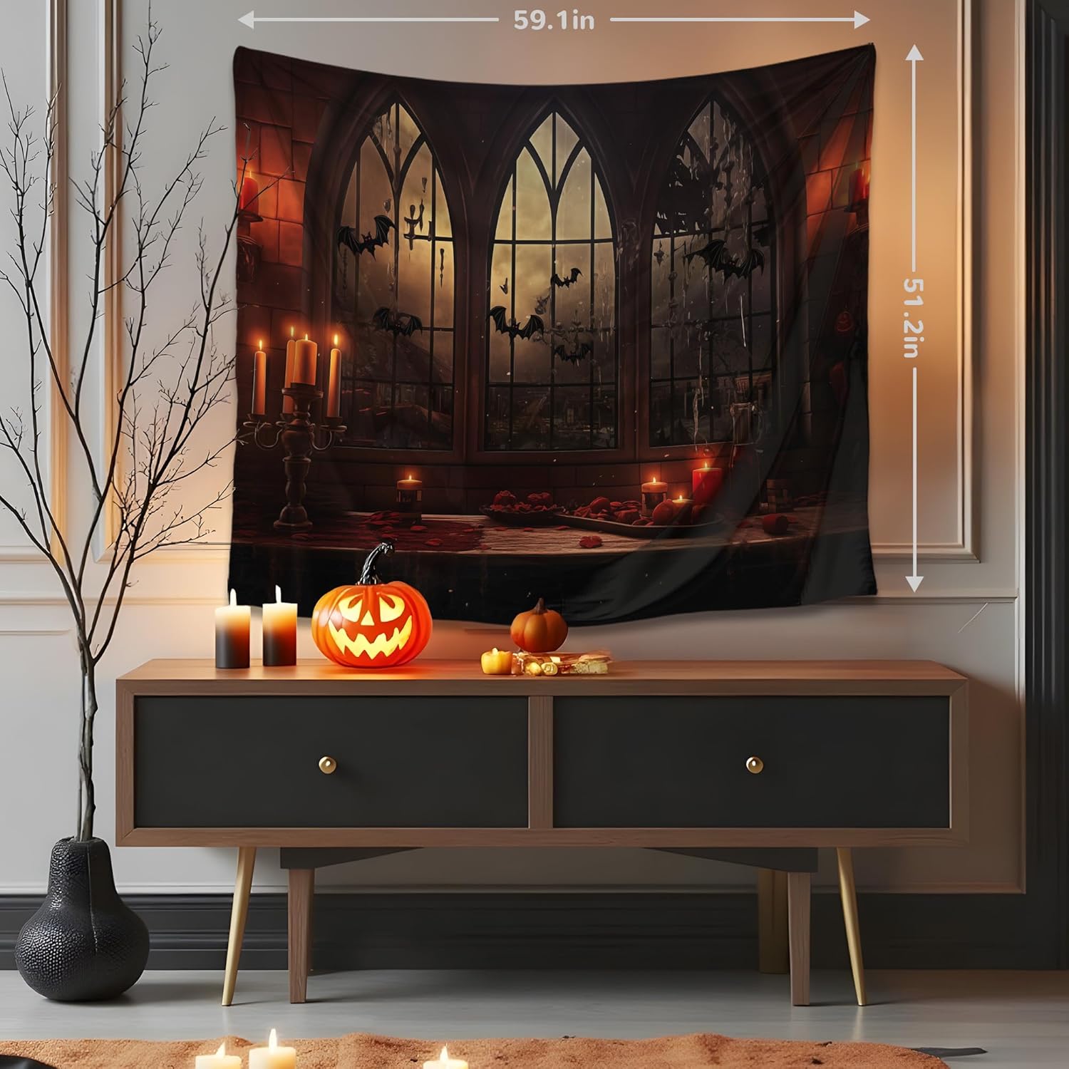 QGHOT Halloween Tapestry Wall Hanging Horror Castle Window Tapestry Gothic Spooky Backdrop Vampire Medieval Tapestries for Bedroom Living Room Dorm Wall Art Decor (59.1"x51.2")
