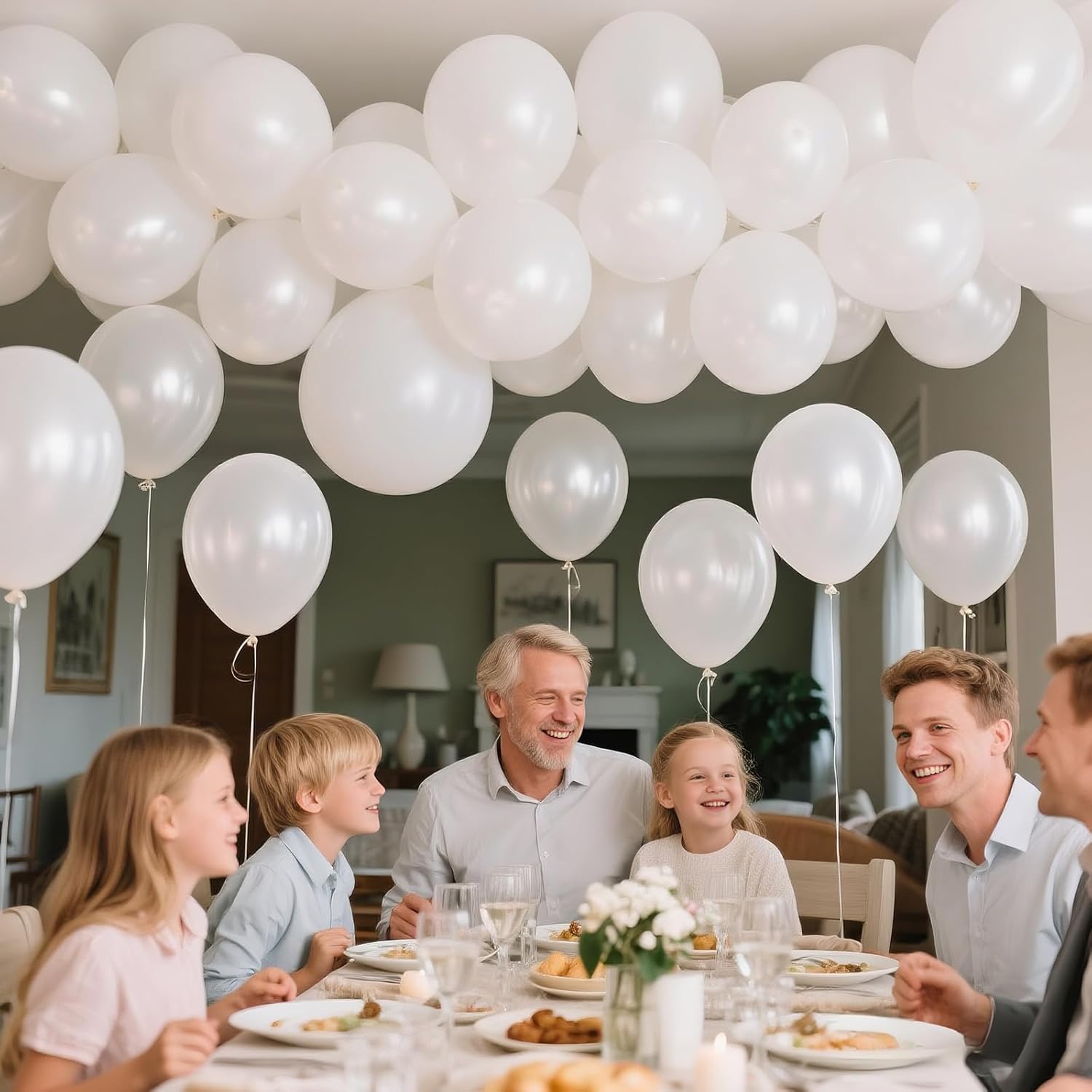 - 110-Count 12" Pearl White Latex Balloons:Premium bulk pack of 110 shimmering 12-inch balloons—perfect for weddings, upscale events, or elegant photo backdrops with a luxurious glow.