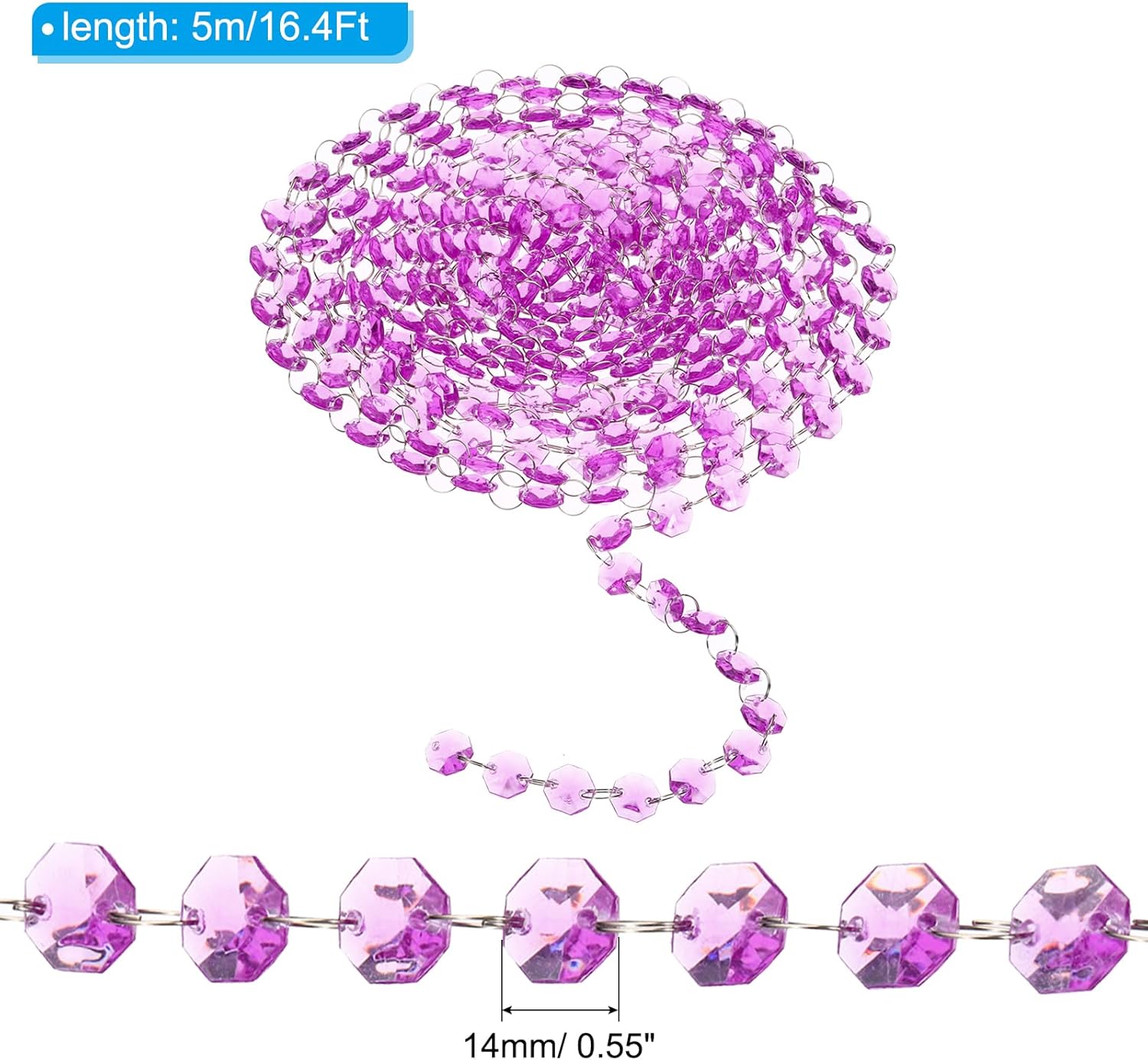 PATIKIL 14 mm Crystal Garland Strands, 16.4 Ft Acrylic Octagon Chandelier Bead Chains String for DIY Craft Wedding Party Home Decorative Jewelry Making, Purple