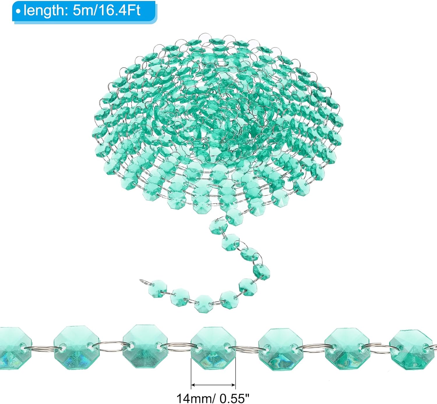 PATIKIL 14 mm Crystal Garland Strands, 16.4 Ft Acrylic Octagon Chandelier Bead Chains String for DIY Craft Wedding Party Home Decorative Jewelry Making, Blue