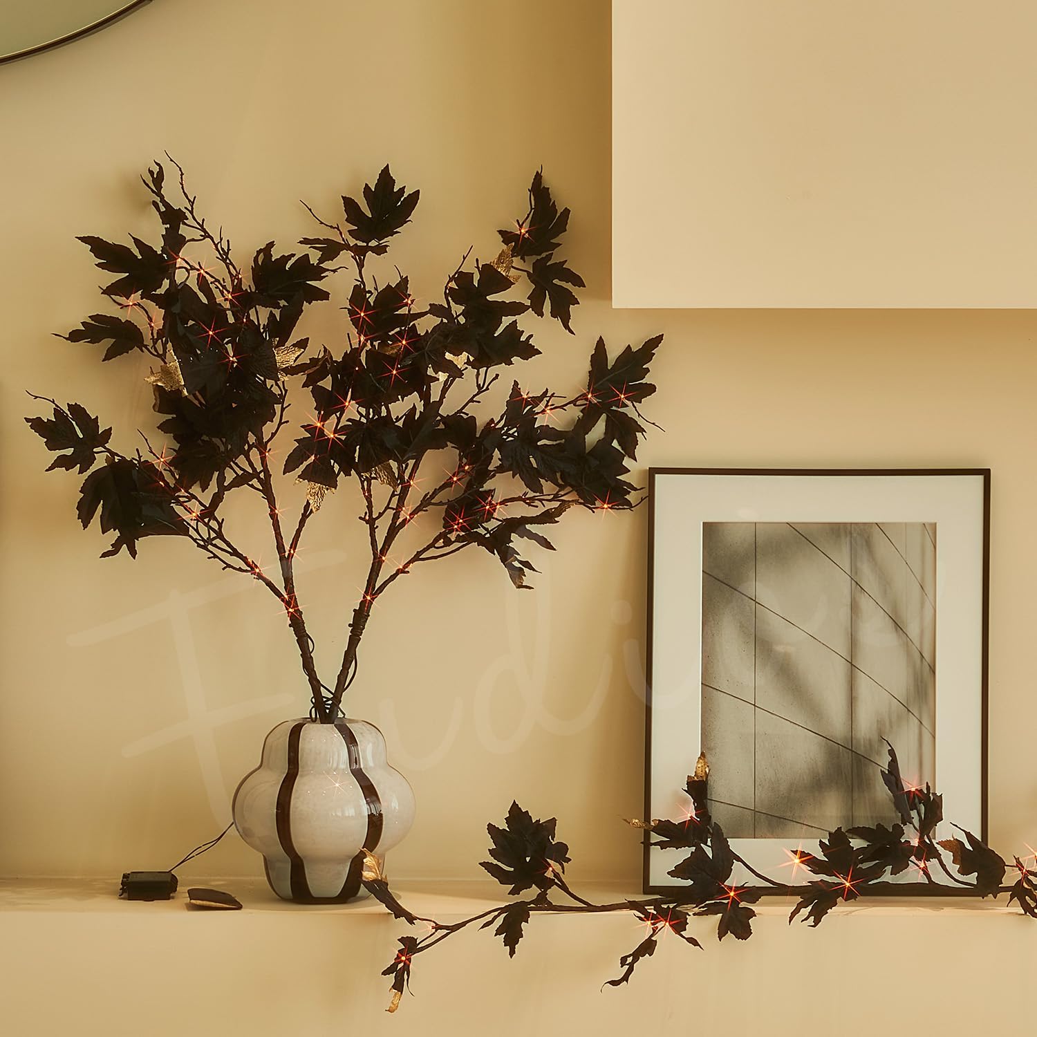 - 🎃 HALLOWEEN DECOR : NEW designed lighted Halloween branches with black and gold maple leaves.32IN tall(Vase not included)