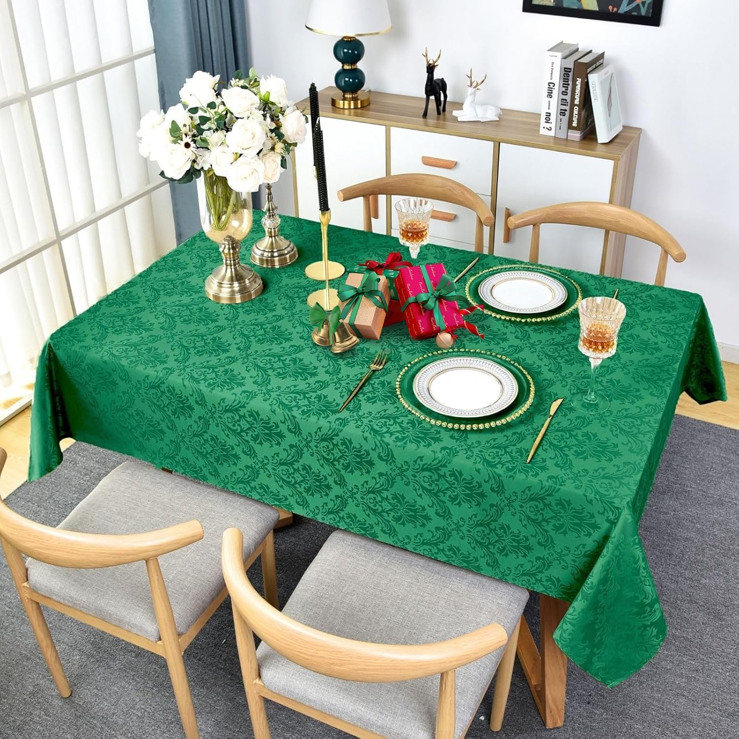 - 【Available Size】: Our jacquard Christmas green tablecloth comes in five distinct sizes,52×52, 52×70, 60×84, 60×102, 60×120 inch, offering versatility to accommodate the diverse dimensions of our customers' tables.