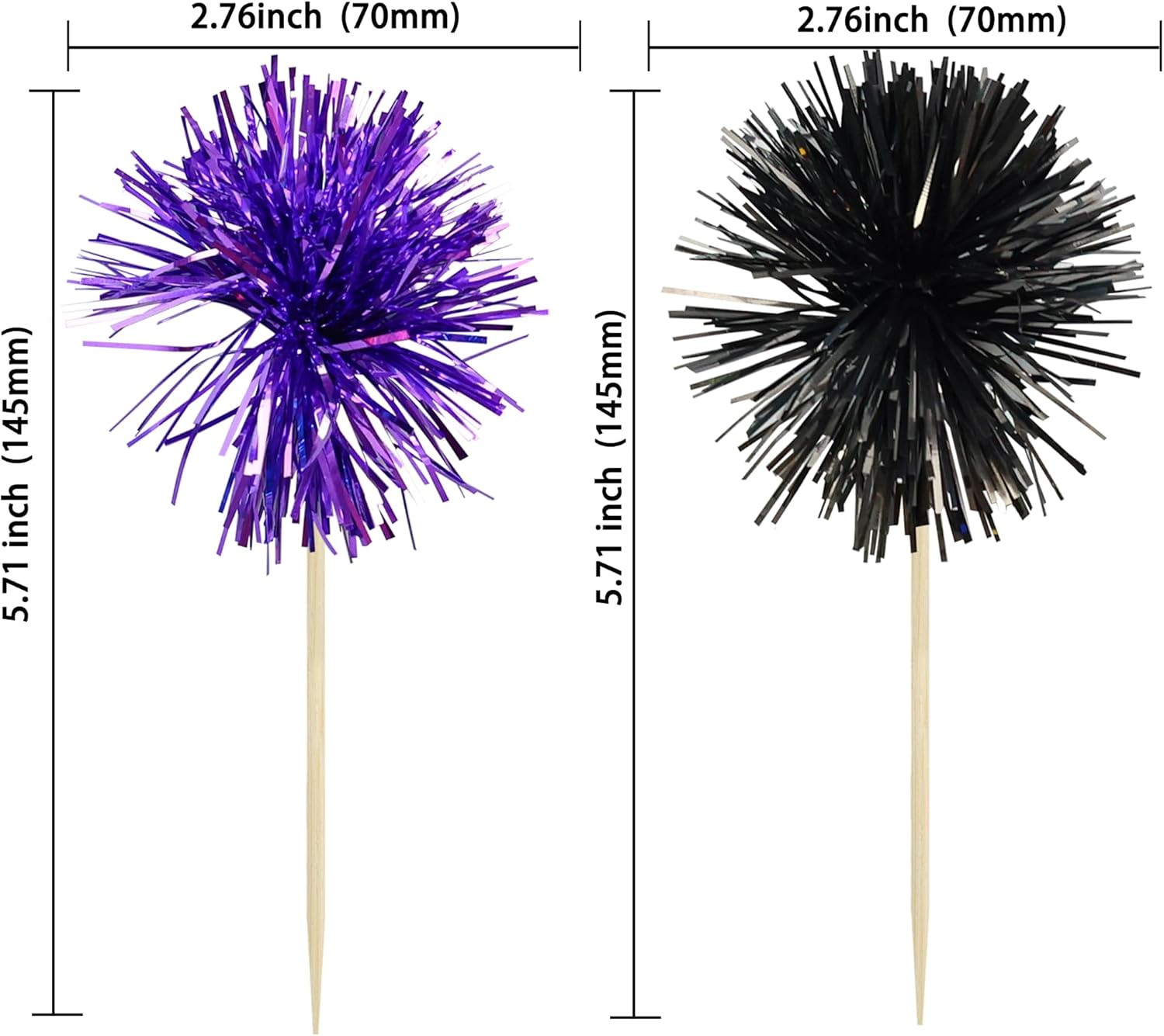 Gyufise 30Pcs Foil Firework Cupcake Toppers Sparkle Tinsel Cake Toppers Tinsel Drink Cake Decoration Cocktail Picks for Birthday Wedding Graduation Party Supplies Black Purple