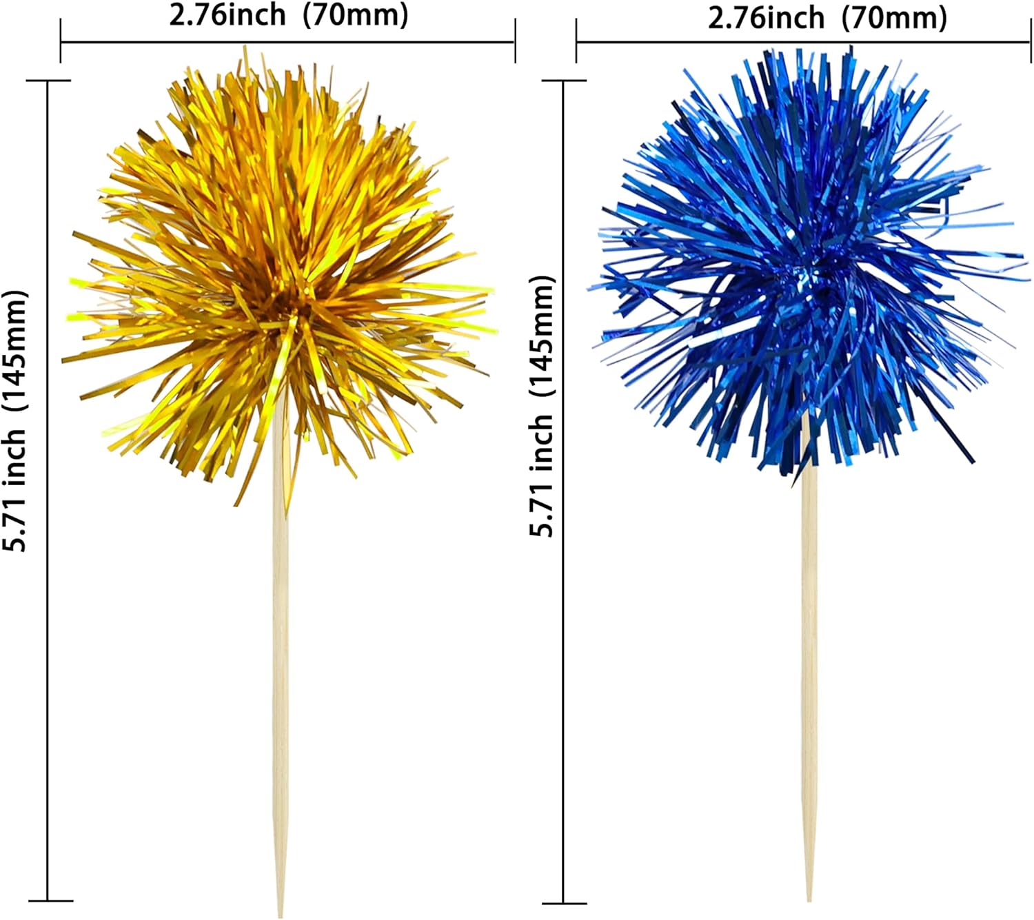 Gyufise 30Pcs Foil Firework Cupcake Toppers Sparkle Tinsel Cake Toppers Tinsel Drink Cake Decoration Cocktail Picks for Birthday Wedding Graduation Party Supplies Gold Dark Blue