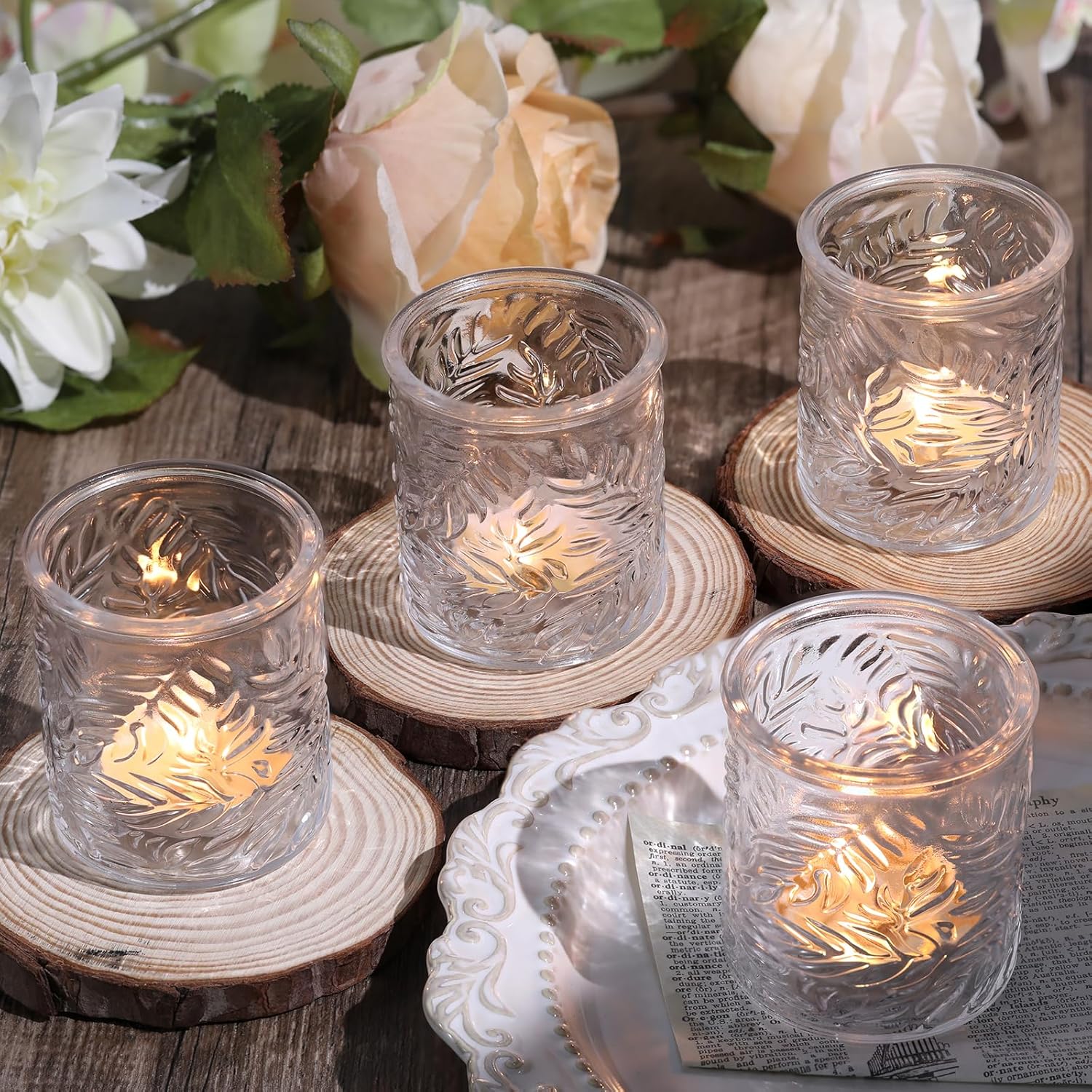 - Exquisite appearance: The surface of the HAVITI transparent glass candle holder has an elegant leaf-like embossed design. This design allows the tea candle holder to reflect more light, making it sparkle when lit, creating a warm and tranquil atmosphere for you.