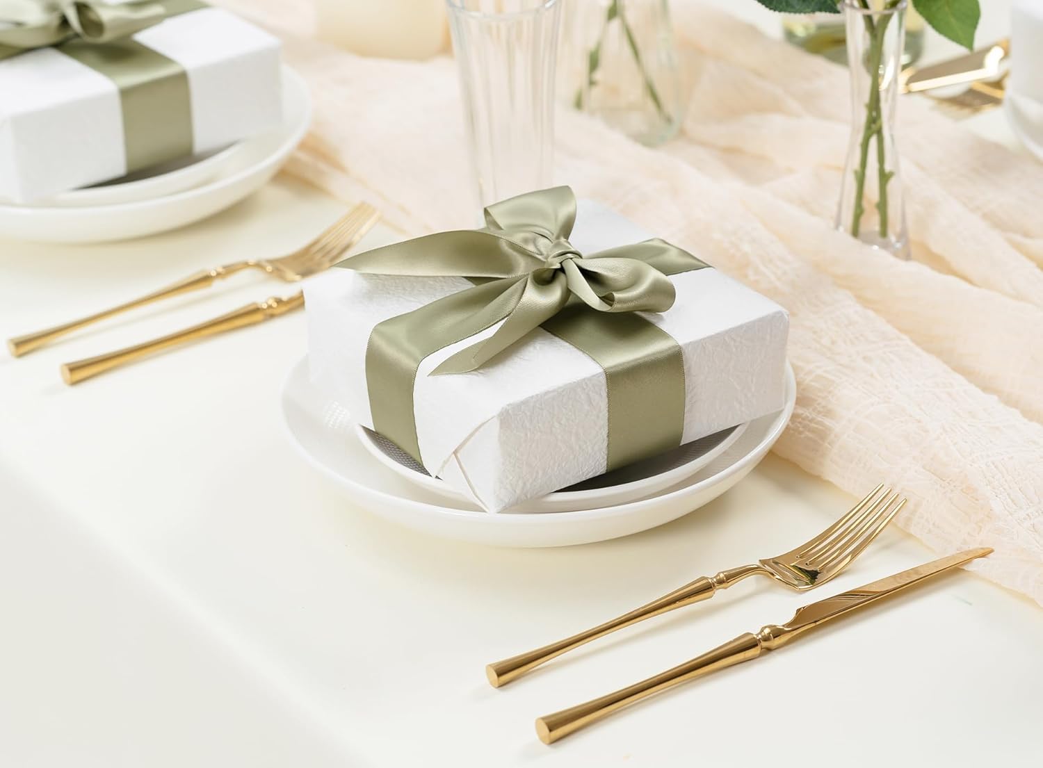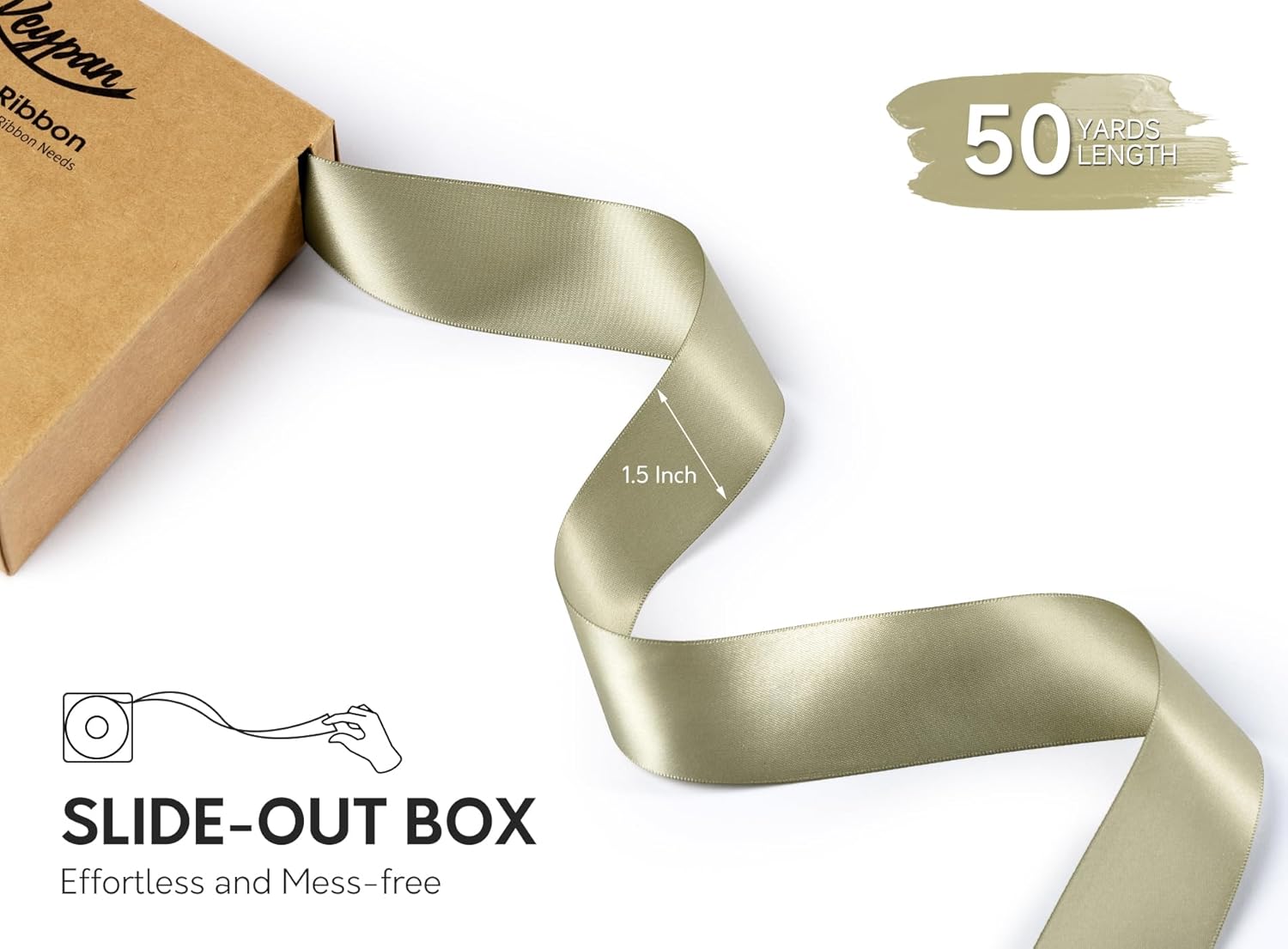 Sage Green Satin Ribbon 1-1/2 Inch x 50 Yards Double-Faced Ribbons for Gift Wrapping Crafts Flower Bouquet Wedding Paper Bows Invitations