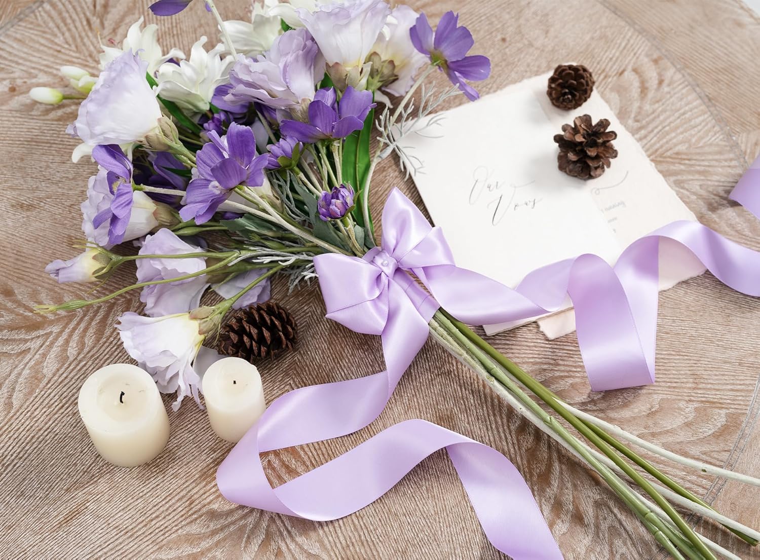 Lavender Satin Ribbon 1-1/2 Inch x 50 Yards Double-Faced Ribbons for Gift Wrapping Crafts Flower Bouquet Wedding Paper Bows Invitations