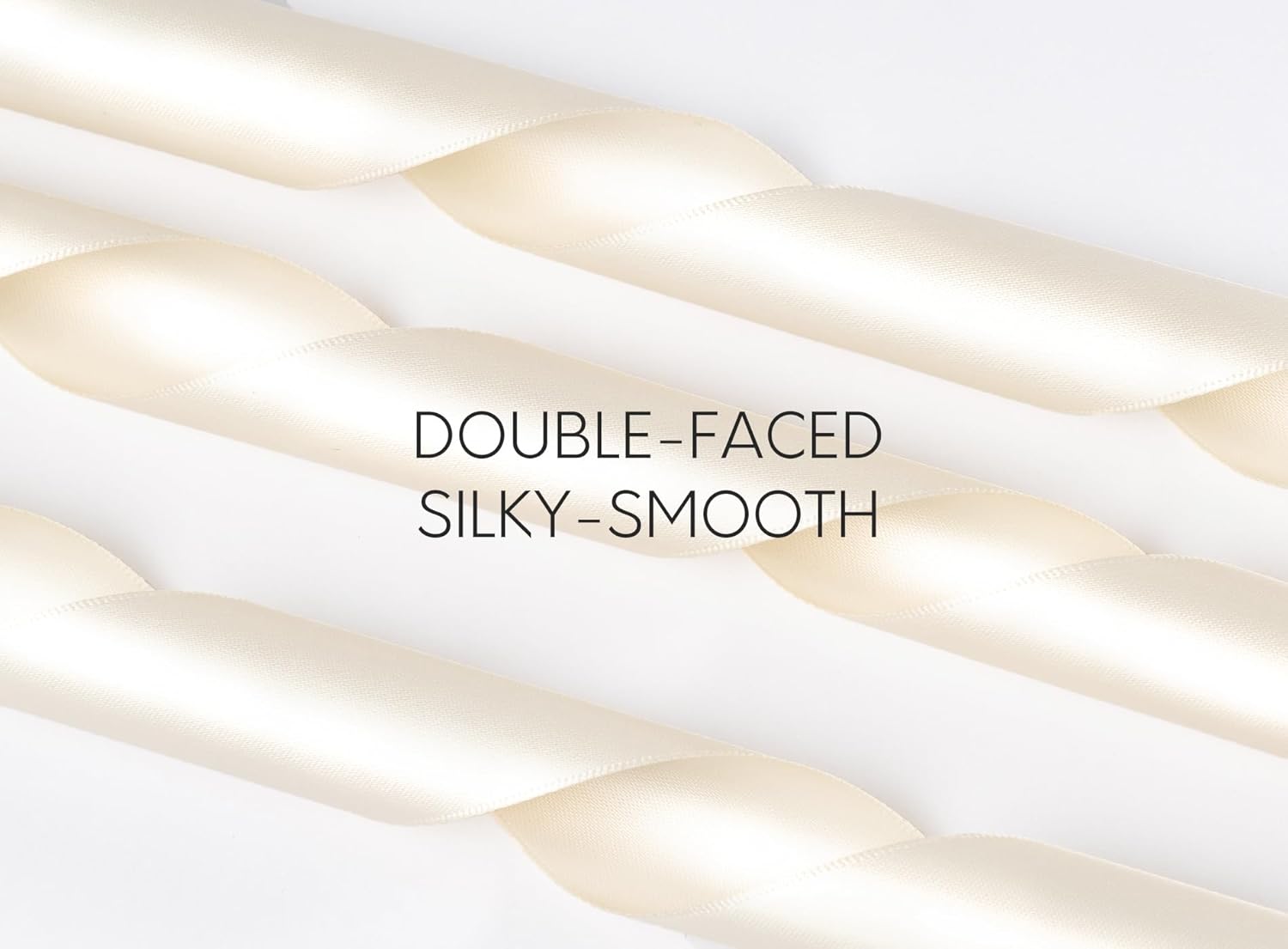 Ivory Satin Ribbon 1-1/2 Inch x 50 Yards Double-Faced Polyester Cream Ribbons for Christmas Gift Wrapping Bows Crafts Floral Bouquet Wedding Invitations