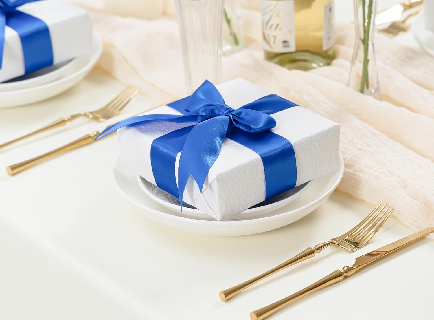 Royal Blue Satin Ribbon 1-1/2 Inch x 50 Yards Double-Faced Ribbons for Gift Wrapping Flower Bouquet Wedding Paper Bows Invitations Crafts