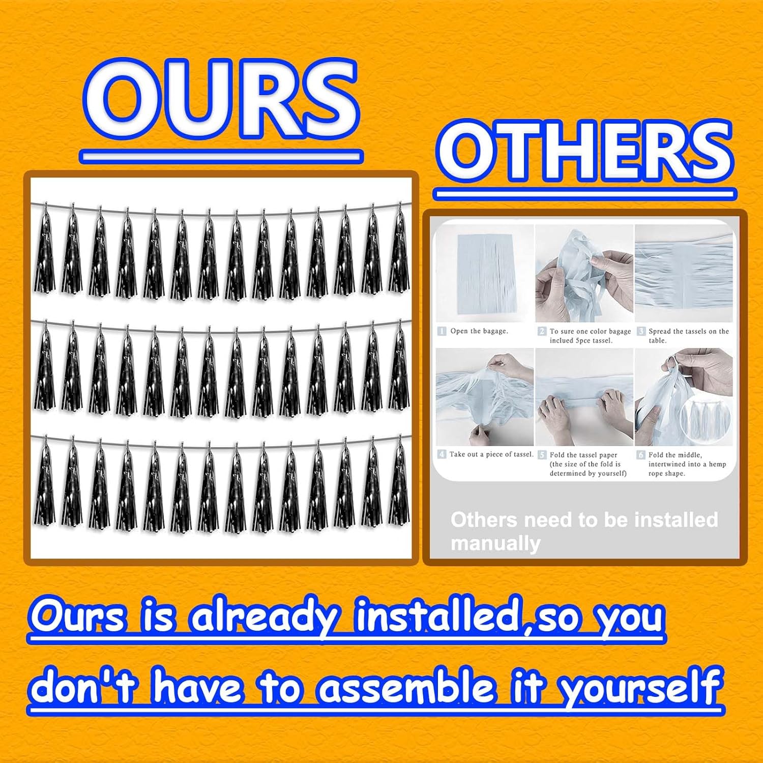 - 【Package Includes】The total length of the black birthday tassels banner is 30 feet, divided into 3 strips, each 10 feet long. Each banner contains 15 tassels, and each tassel measures 14 inches, for birthday decorations many occasions uitable for Patriotic display, Homecoming Float, Christmas Float, ecorative metal trailers, graduation floats etc