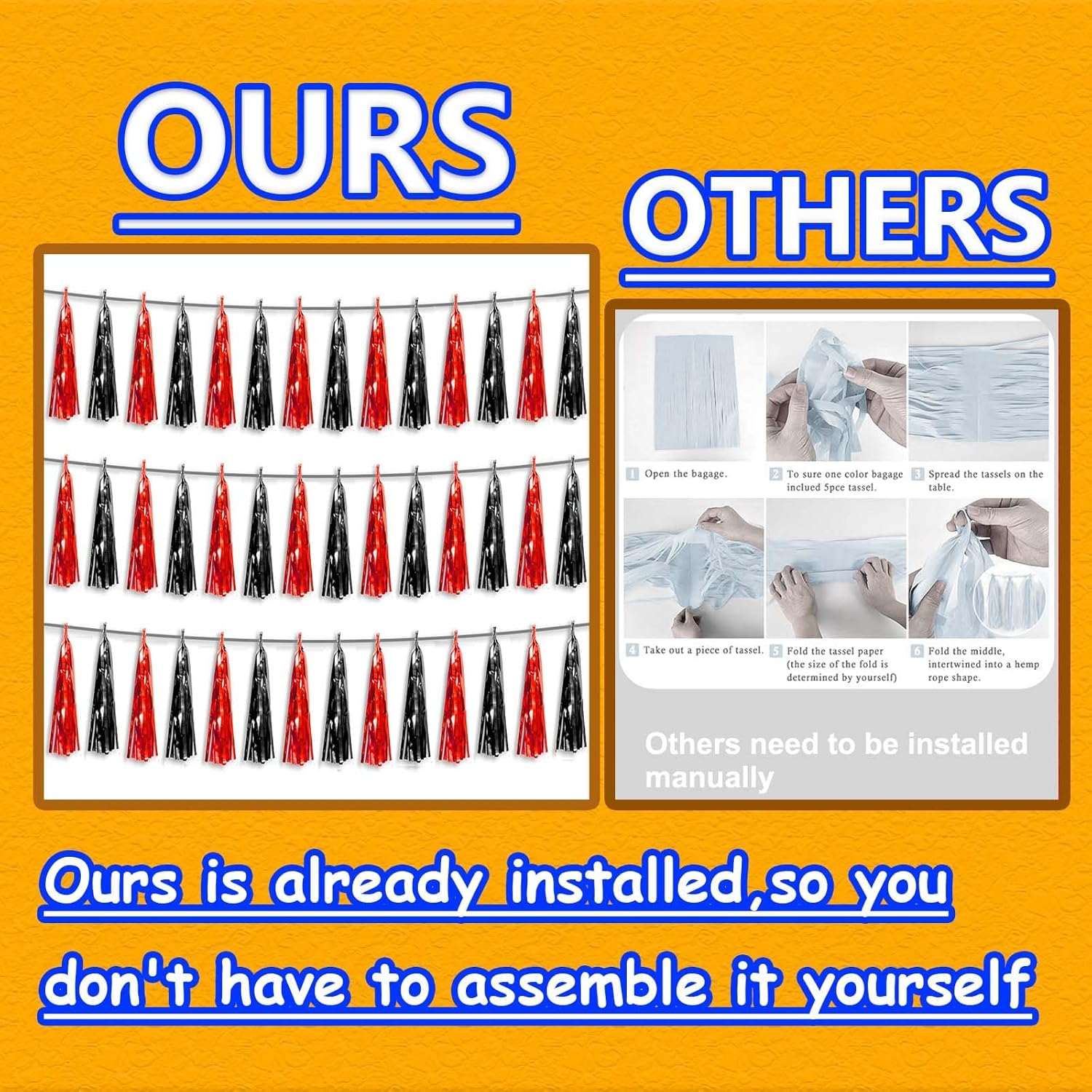 - 【Package Includes】The total length of the black red birthday tassels banner is 30 feet, divided into 3 strips, each 10 feet long. Each banner contains 15 tassels, and each tassel measures 14 inches, for birthday decorations many occasions uitable for Patriotic display, Homecoming Float, Christmas Float, ecorative metal trailers, graduation floats etc