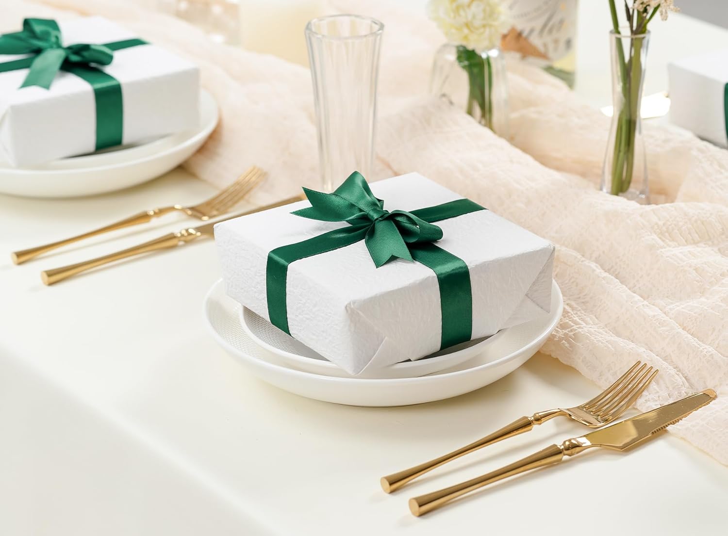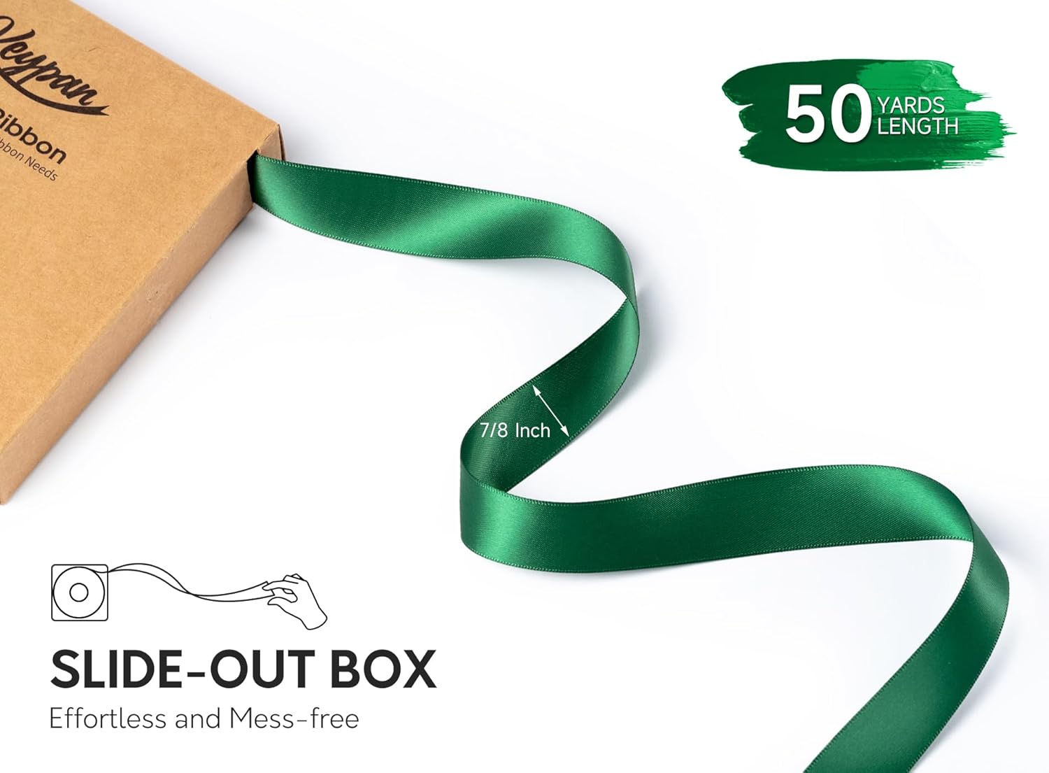 Forest Green Satin Ribbon 7/8 Inch x 50 Yards Double-Faced Ribbons for Christmas Gift Wrapping Crafts Flower Bouquet Wedding Paper Bows Invitations