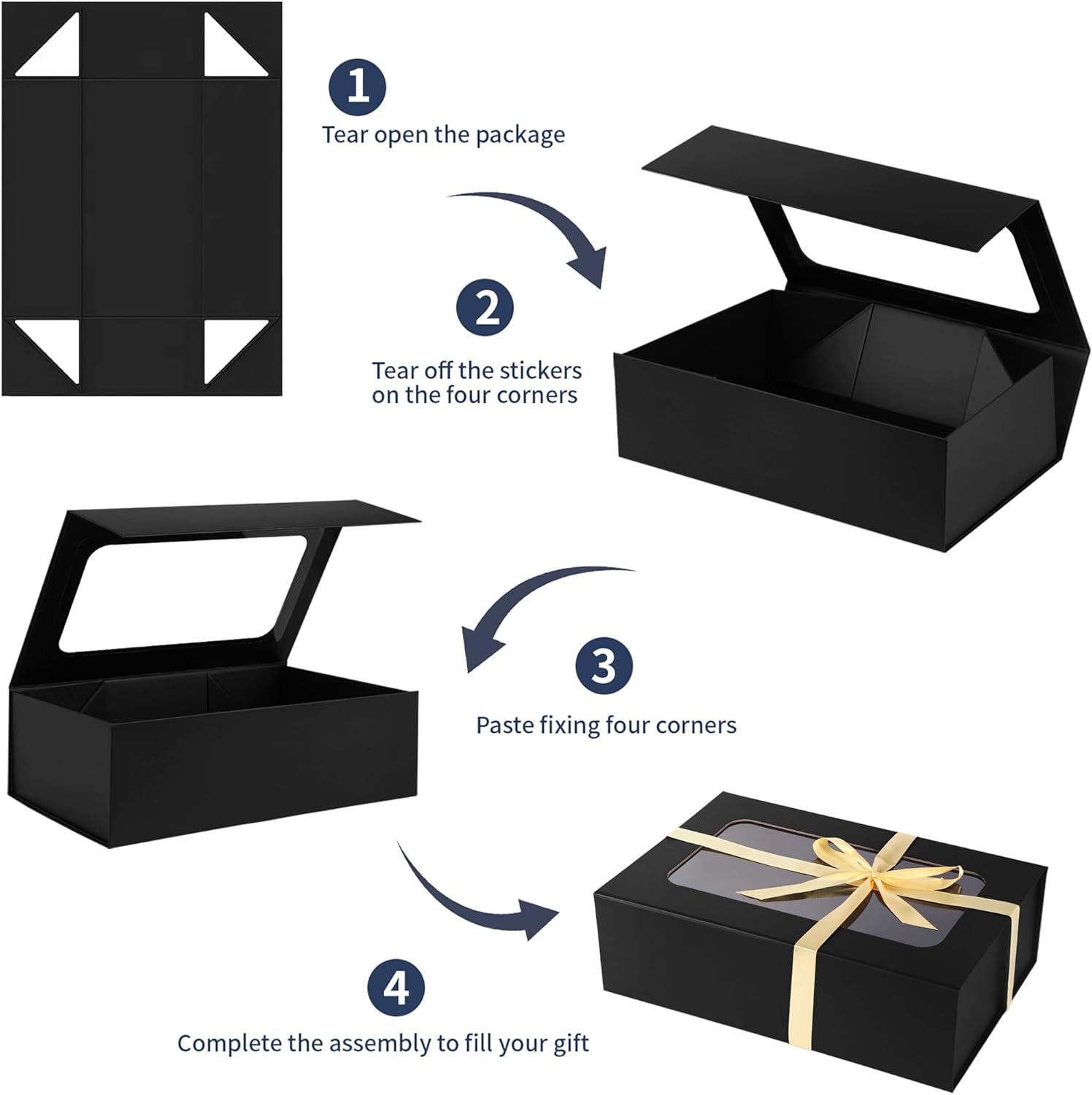 - 💝SUPERIOR FUNCTIONALITY: The beautiful gift boxes allows you to wrap your gift without having to find wrapping paper, ribbon or tape. Magnetic gift box with window can better display your gifts.This simple gift box will enhance your gift and turn it into a unique showpiece.