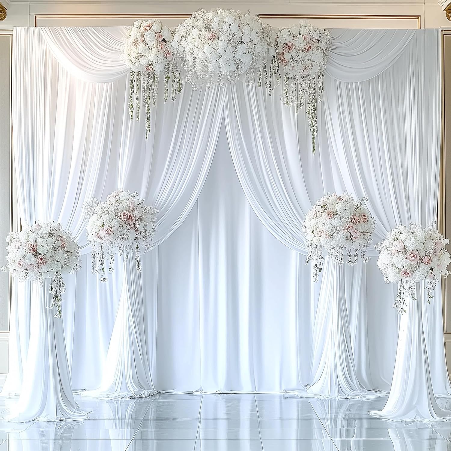 - Wrinkle Free White Backdrop Curtain: This white silky soft wedding backdrop for reception is made of wrinkle free material, known for its soft and silky texture, which will give you an extraordinary feeling of touch. The backdrop is exquisitely sewn, smooth and durable fpolyester with natural drape, add more elegance and romance to your weddings.