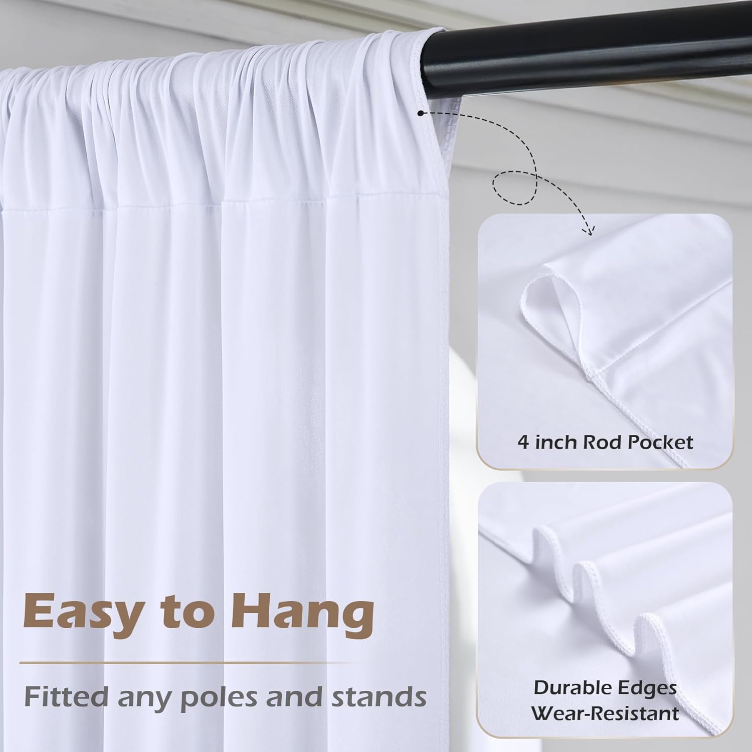 - Crafted from wrinkle-free polyester fabric - The white backdrop curtains features a luxuriously soft, silk-like smoothness that drapes elegantly and maintains flawless aesthetics without ironing drapes backdrop.