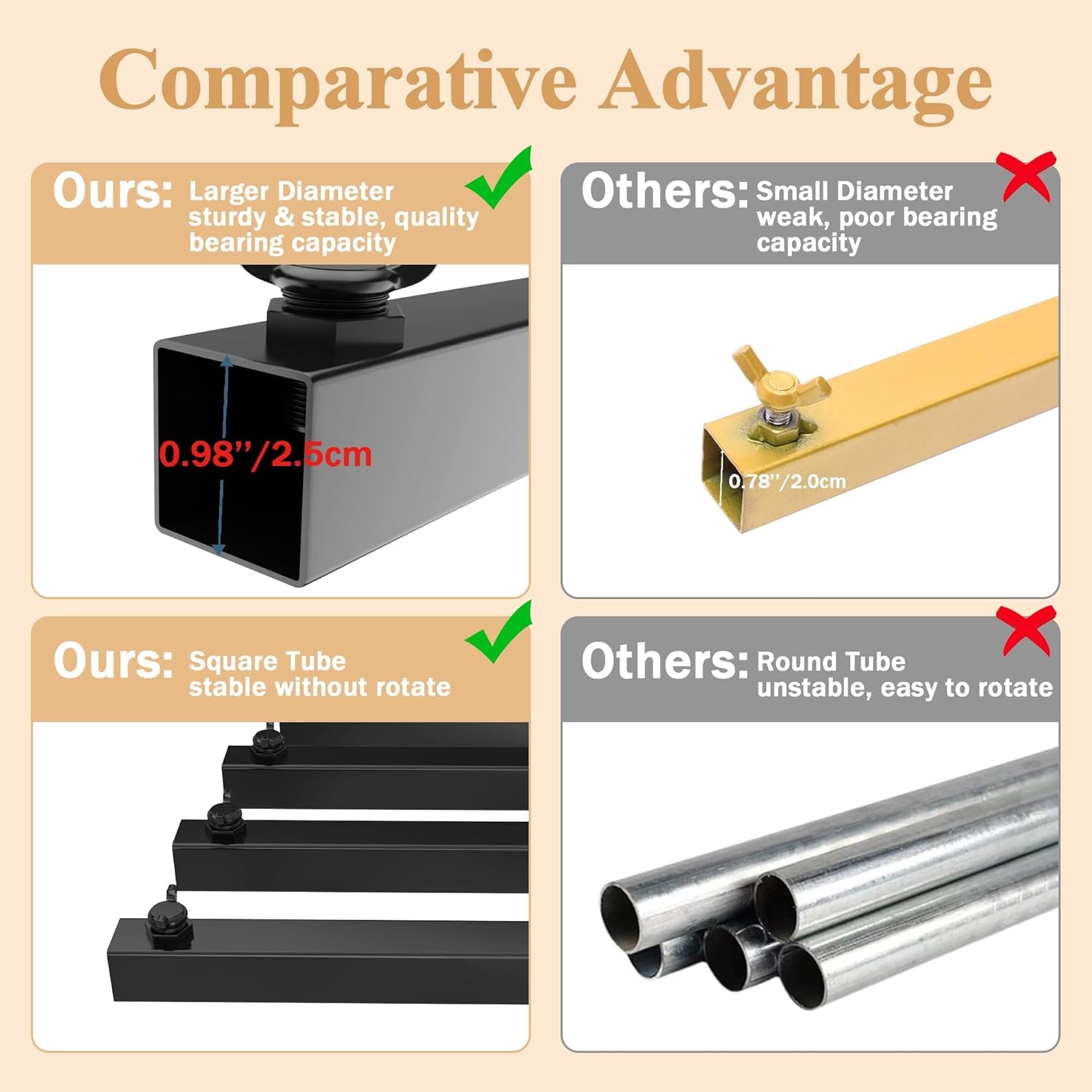 - 【Heavy Duty Backdrop Stand】8x8 ft/2.4x2.4 M square backdrop stand heavy duty with base is made of 1.0mm thick high toughness and anti-rust square steel pipe, more stable than circular tube without easily twist. Sturdy base legs provides a firm and balanced support of metal photo backdrop stand, safe and secure.