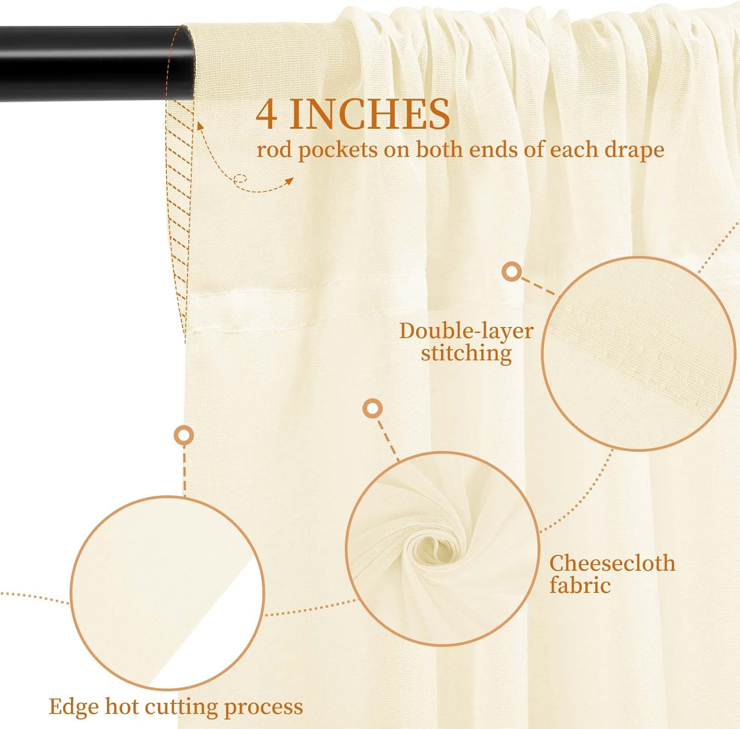 - 👑【Easy Hanging Draping Fabric】There is a 4 inches pocket for rod or pole entry at the top and bottom of each panel creating beautiful draping. Easy and quick to install, it can be hung vertically or horizontally. Different hanging methods will bring you various visual effects. You can also hang some balloon garland, window curtain lights and artificial flowers with stem to add an elegant and romantic atmosphere