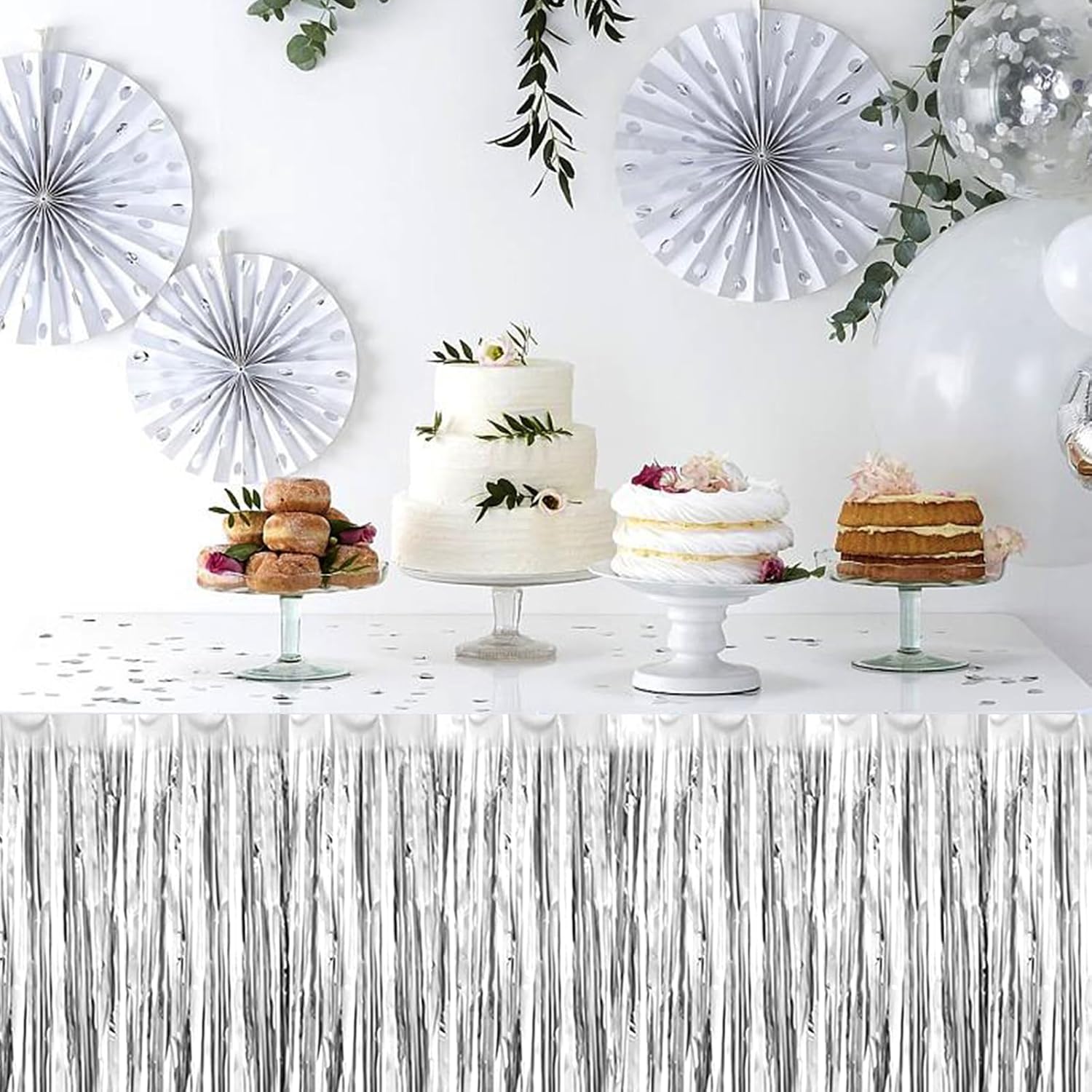 - Easy to Use: the foil fringe table skirts are made of metallic foil, lightweight and easy to use; Each metallic fringe table skirts comes with self-adhesive tape on the top for easy attachment to your wall or table, great for your party venue decoration.