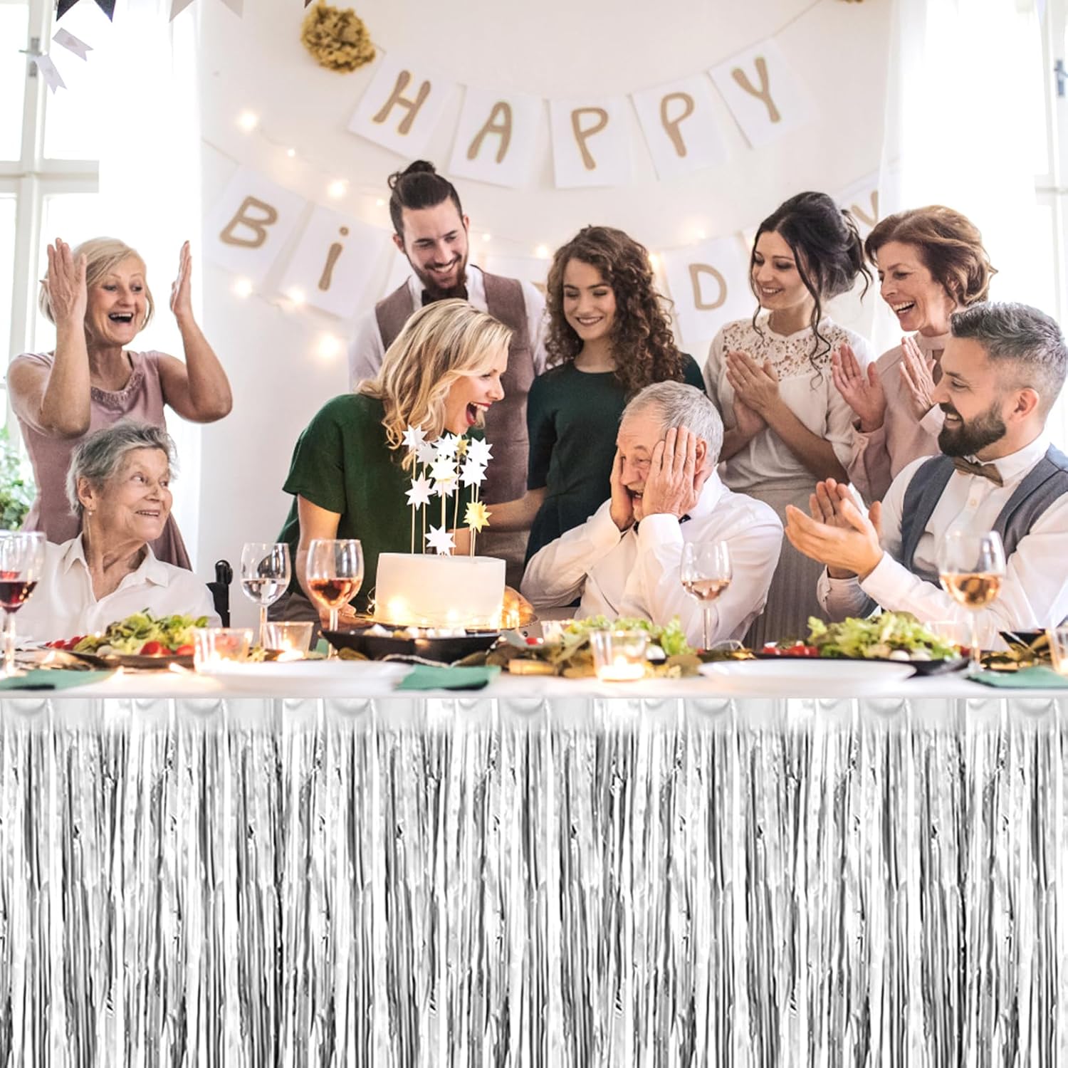 3 Pack 29 x108 Inch Silver Foil Fringe Table Skirts Metallic Banner for Tinsel Streamer Garland Backdrop for Parade Floats Wedding Thanksgiving Birthday Christmas Halloween New Year Party Decoration