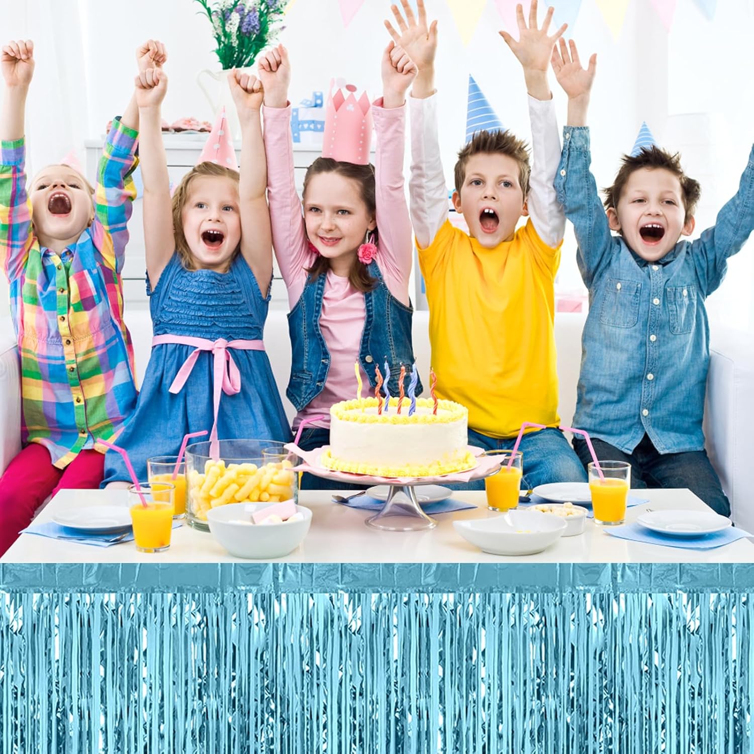 3 Pack 29 x108 Inch Light Blue Foil Fringe Table Skirts Metallic Banner for Tinsel Streamer Garland Backdrop for Parade Floats Wedding Thanksgiving Birthday Christmas New Year Party Decoration