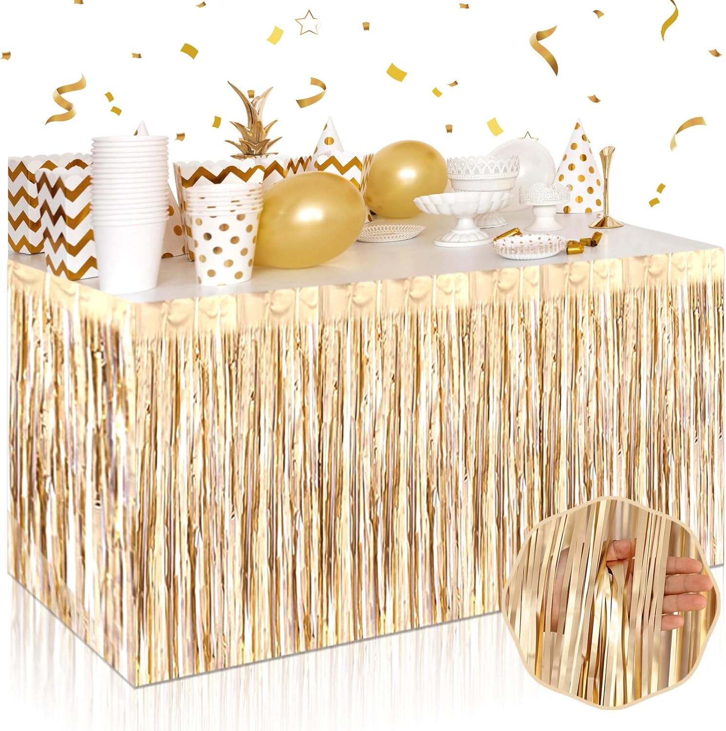 3 Pack 29 x108 Inch Champagne Gold Foil Fringe Table Skirts Metallic Banner for Tinsel Streamer Garland Backdrop for Parade Floats Wedding Thanksgiving Birthday Christmas New Year Party Decoration